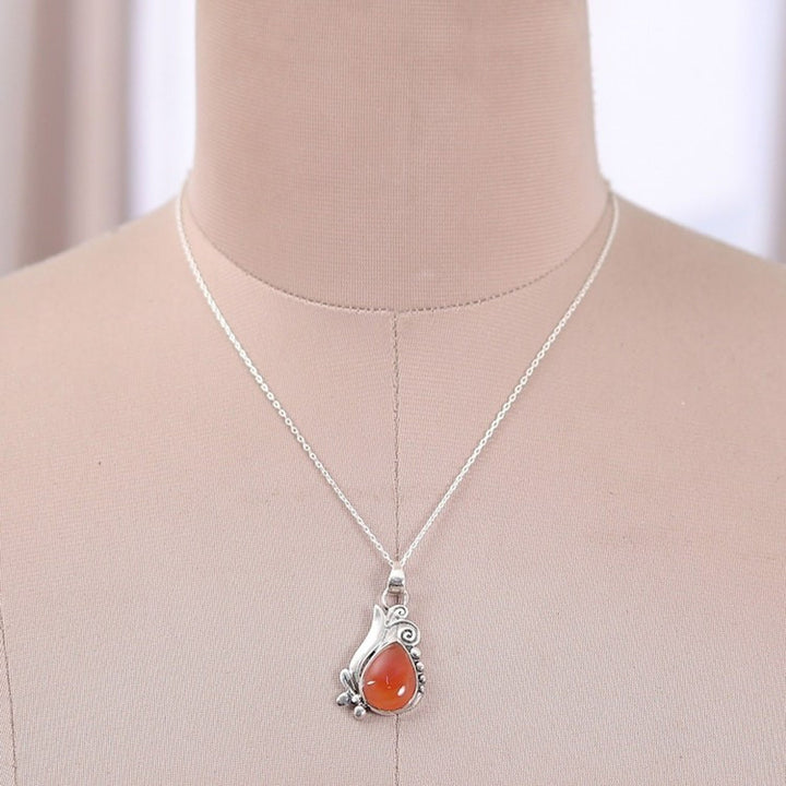 Classic Polished Sterling Silver Carnelian Pendant Necklace 'Grand Sunset'