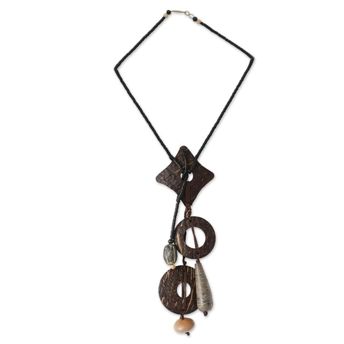 Coconut shell and soapstone Y-necklace 'Eclectic'