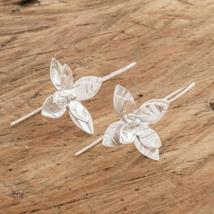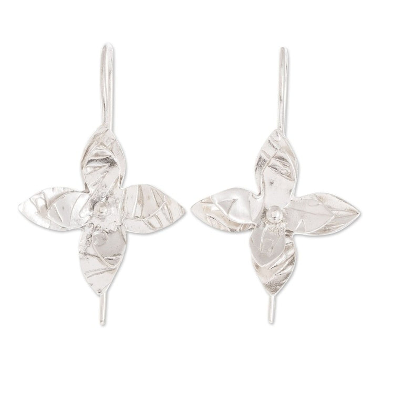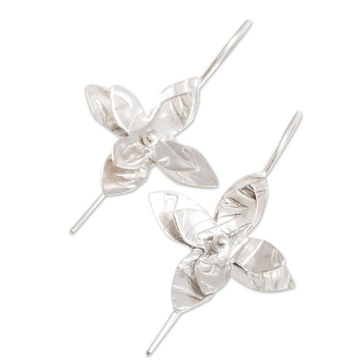 Costa Rican Handmade Sterling Silver Floral Drop Earrings 'Flower Duet'