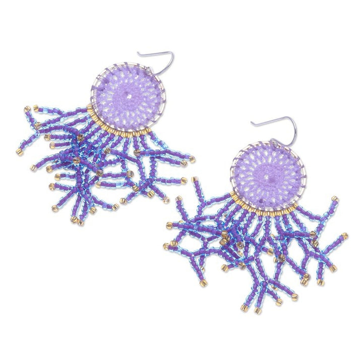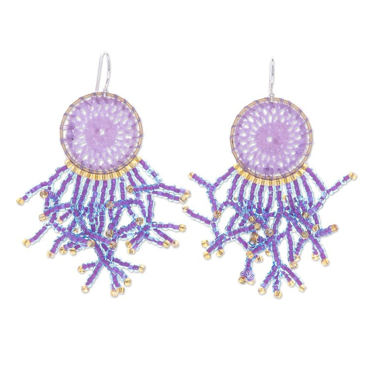 Crocheted Dreamcatcher Earrings with Orchid Glass Beads 'Dreaming Tree in Orchid'