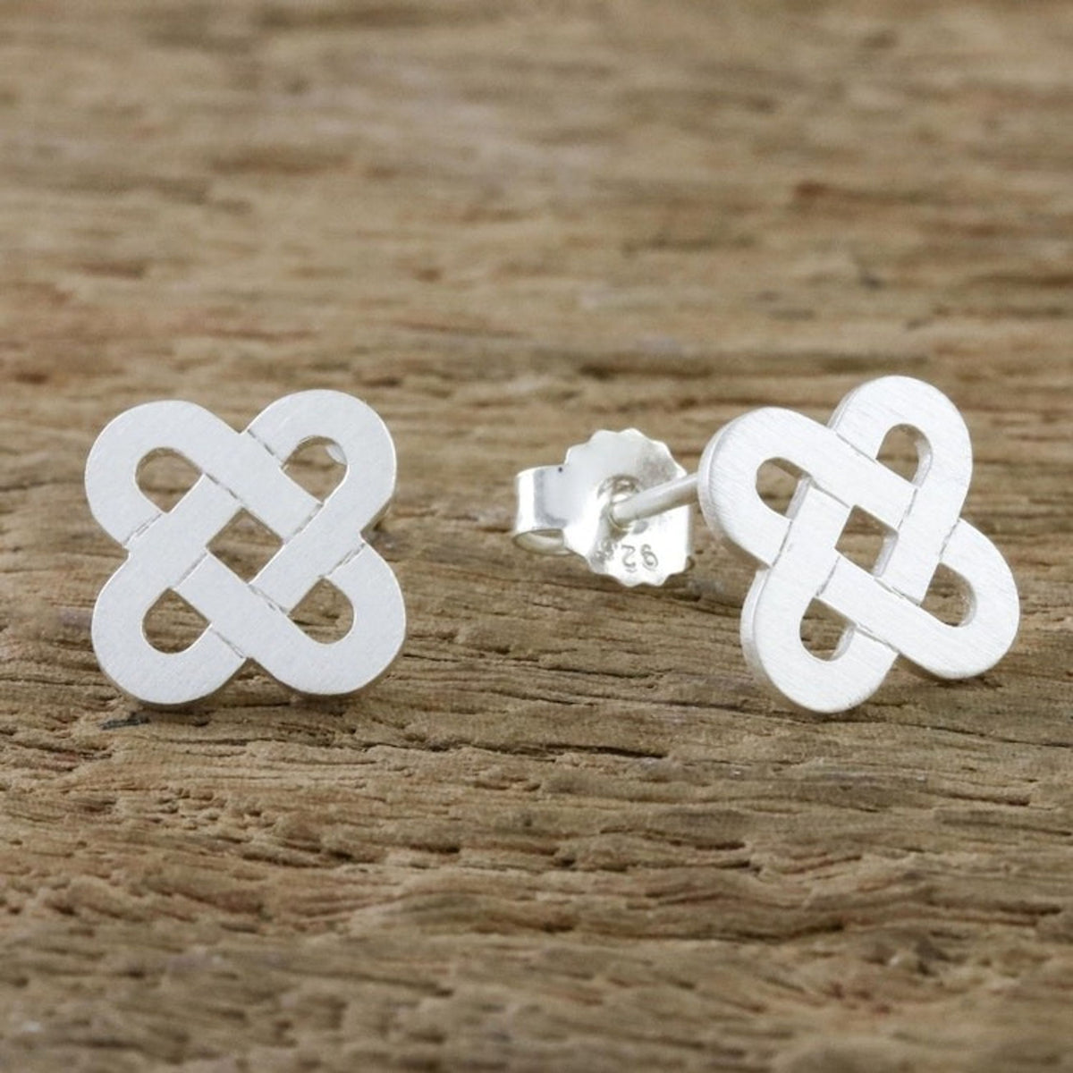 Crossed Ovals Sterling Silver Stud Earrings from Thailand 'Cross Paths'