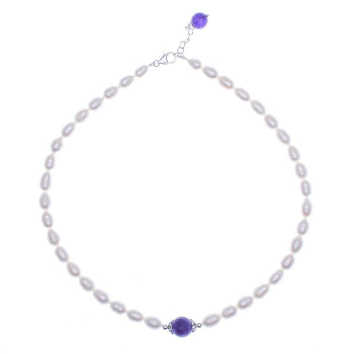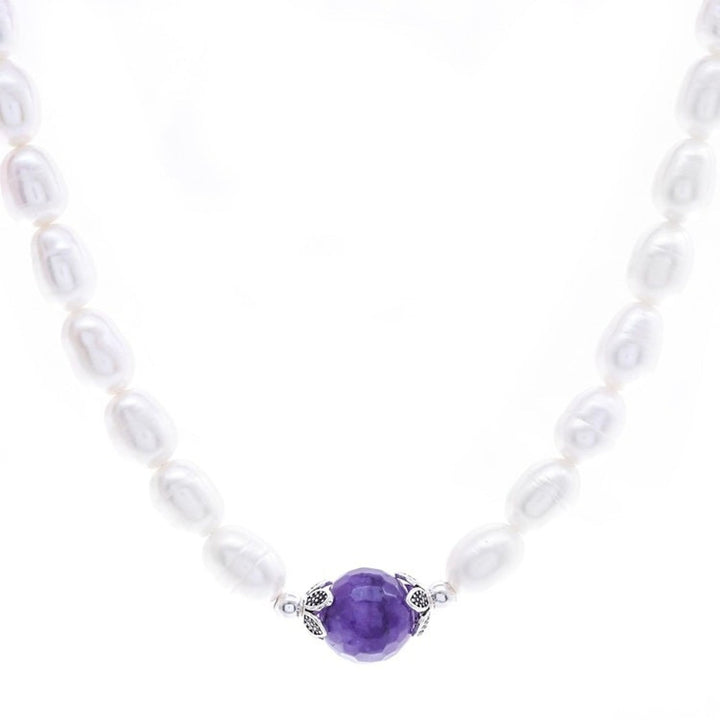 Cultured Pearl and Amethyst Pendant Necklace 'Sea Throne'