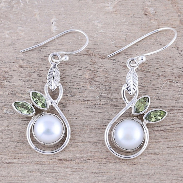 Cultured Pearl and Faceted Peridot Dangle Earrings 'Spring Beauty'