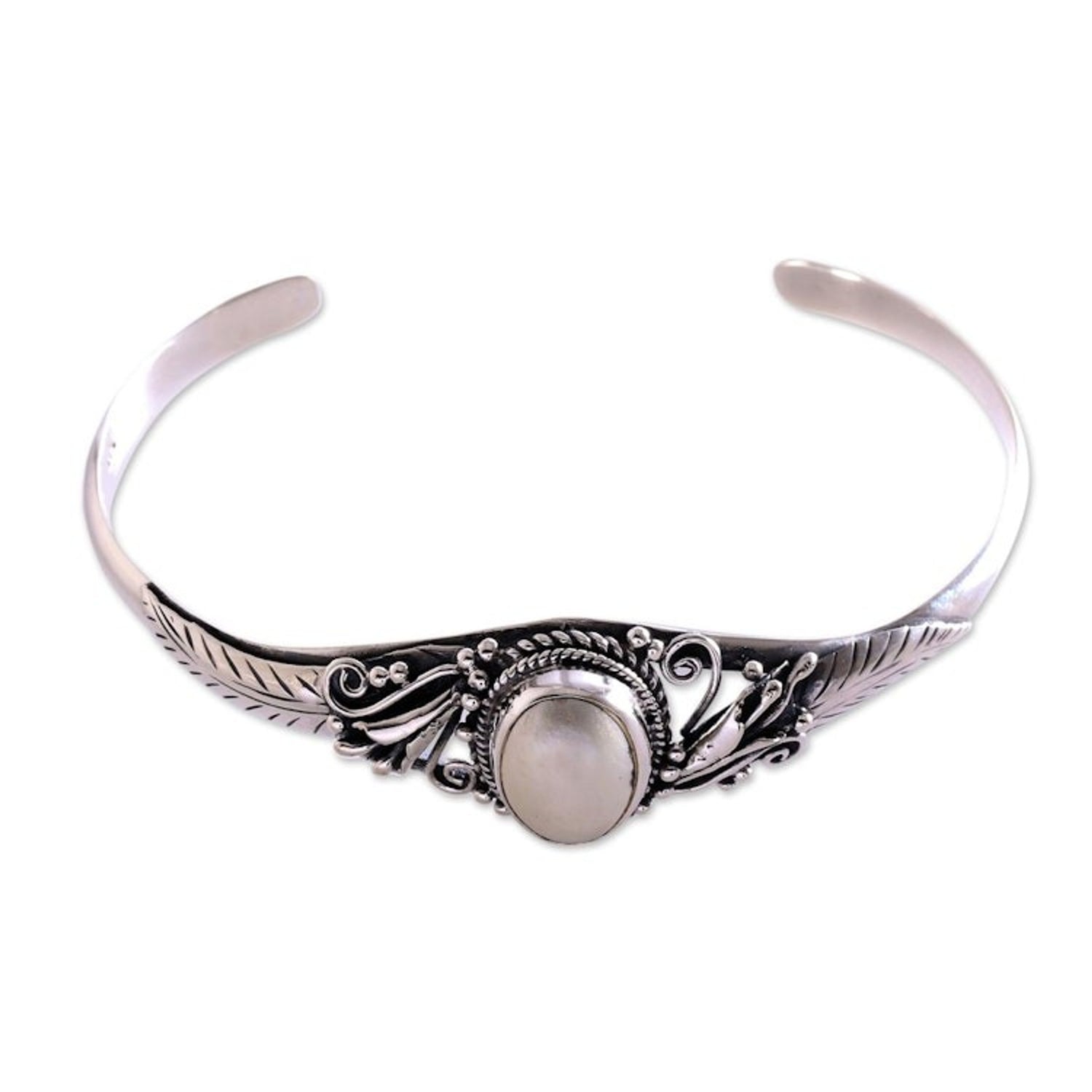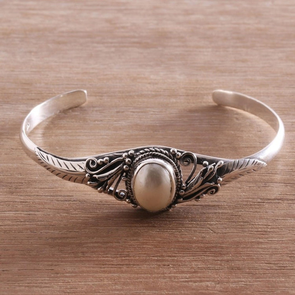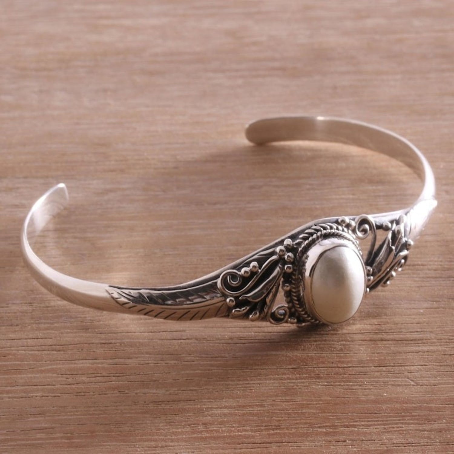 Cultured Pearl Pendant Cuff Bracelet from Bali 'Moonlight Shade'