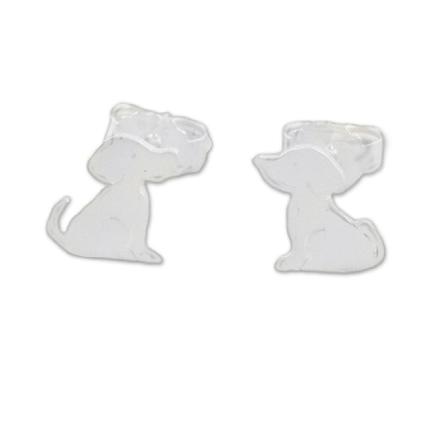 These Cute Sterling Silver Puppy Dog Stud Earrings 'Irresistible Pups' by Sarote Lochotinunt are stud earrings with upturned noses and wagging tails. They are crafted of sterling silver with a brushed satin finish. Each piece the artisan creates embodies problem-solving, innovation, and a heartfelt wish to bring joy.