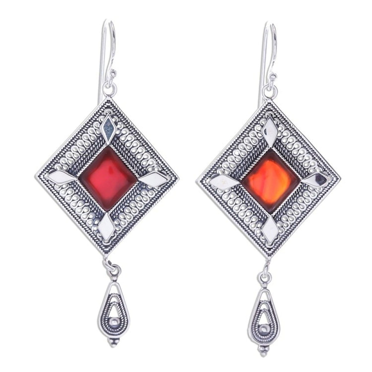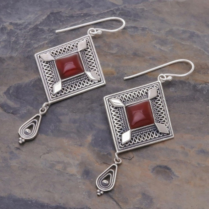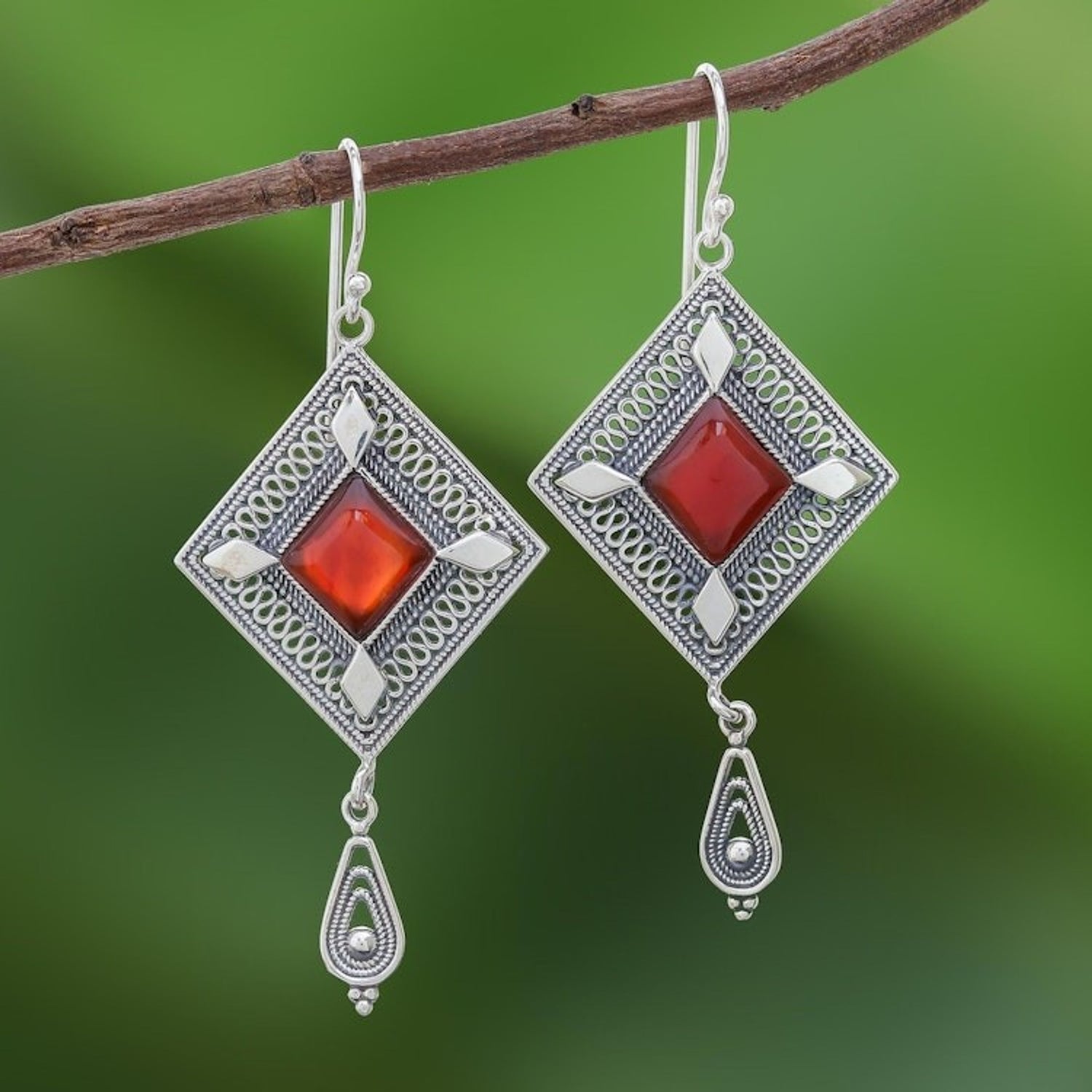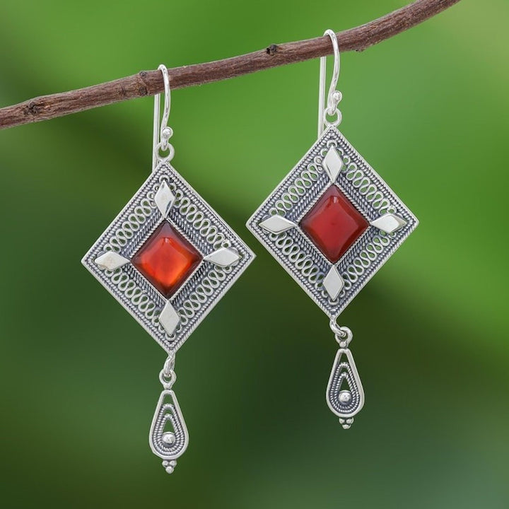 Diamond Shapes Sterling Silver and Carnelian Dangle Earrings 'Silver Diamonds'
