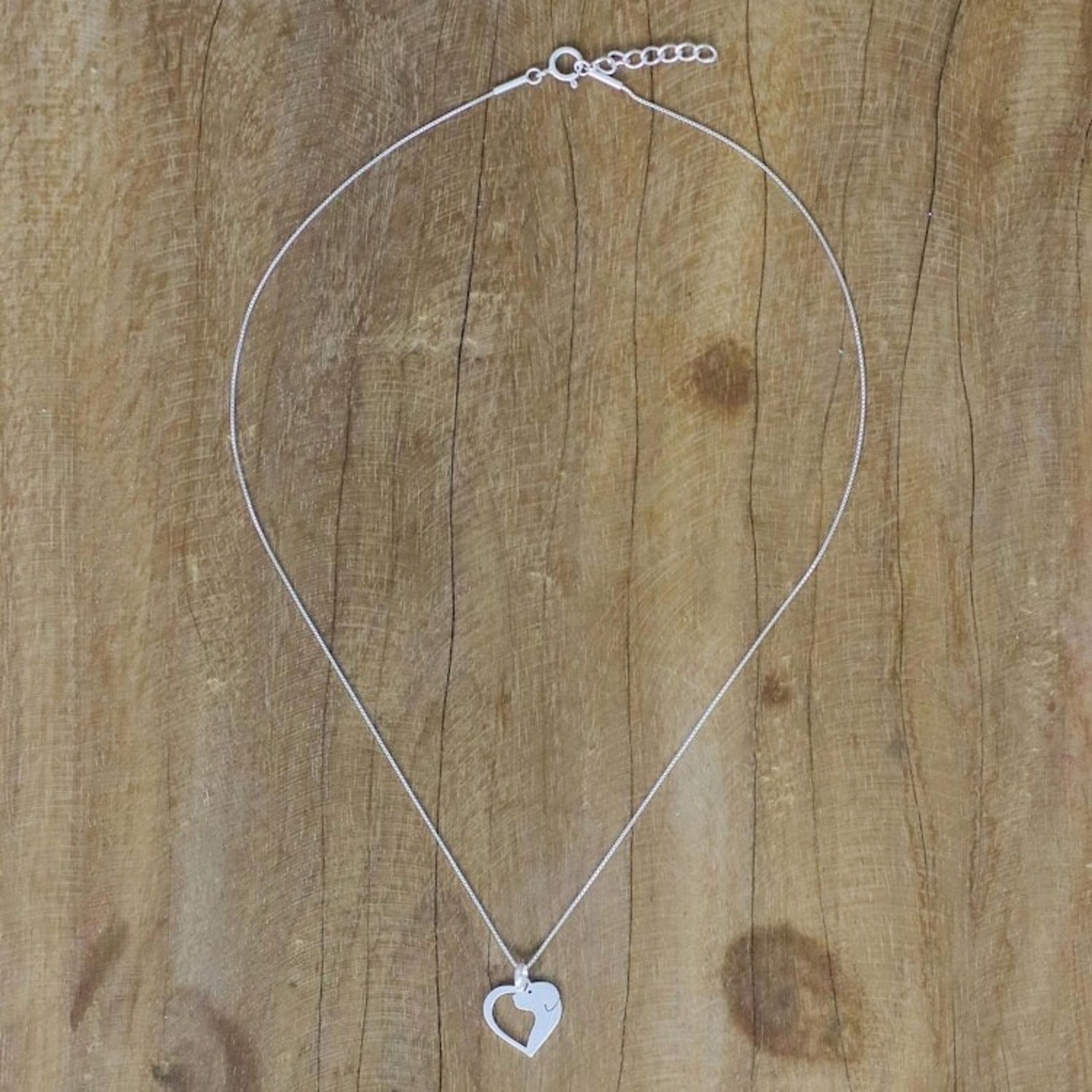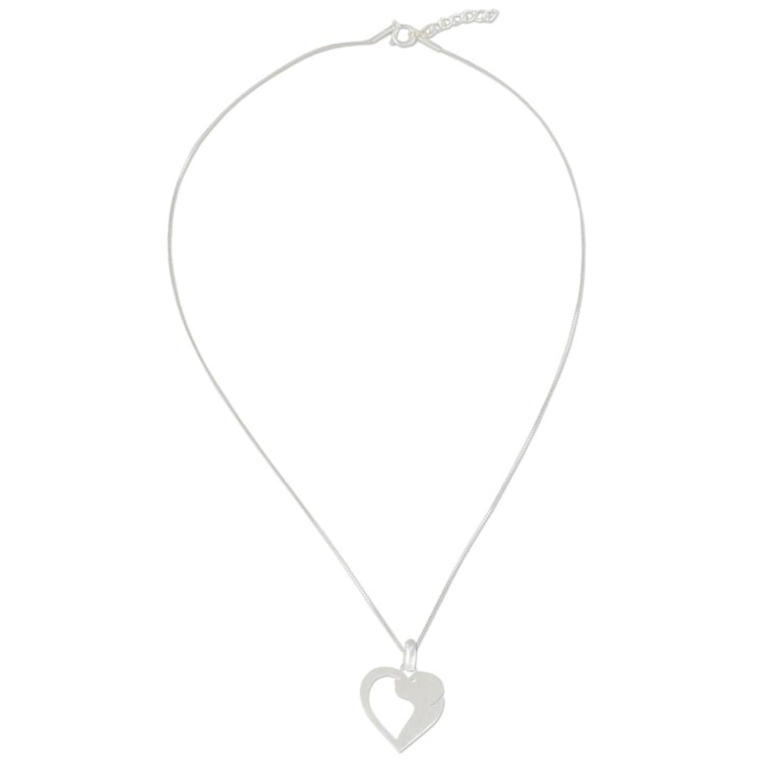 This Dog Heart Sterling Silver Pendant Necklace from Thailand 'Soul of a Puppy' by Sarote Lochotinunt is a necklace centered by a heart-shaped pendant crafted of sterling silver with a brushed-satin finish. Realized with openwork, the heart includes the silhouette of a puppy that looks off in the distance. Each piece he creates embodies problem-solving, innovation, and a heartfelt wish to bring joy.