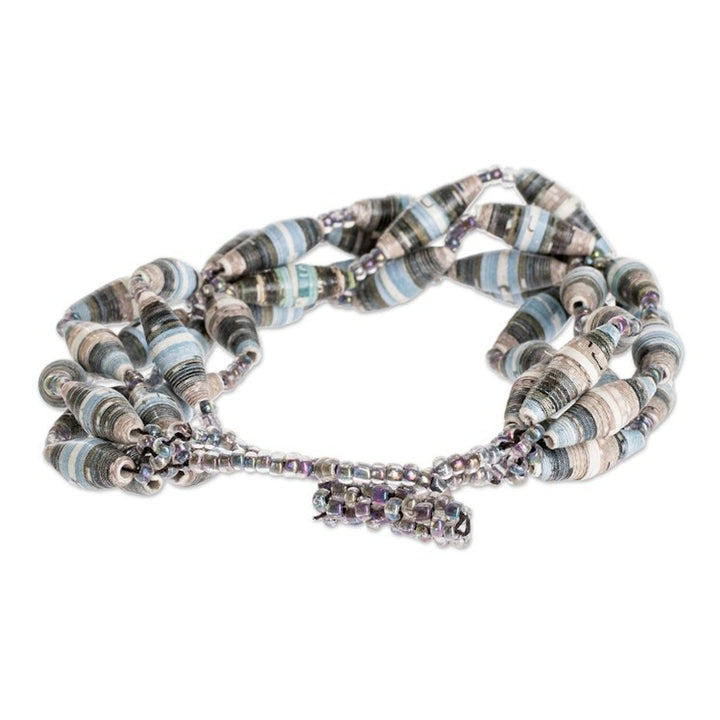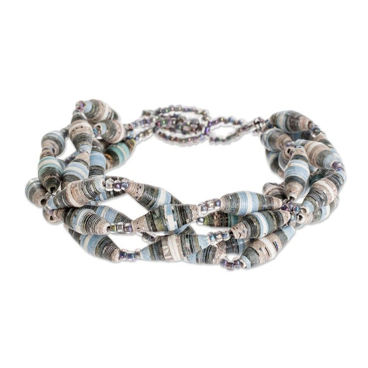 This 'Eco Spiral in Twilight' bracelet by Independent Artisans is more than just an accessory—it's a symbol of hope and community resilience. Crafted by the dedicated youth of Asociación ADISA, an organization committed to empowering people with disabilities, this bracelet embodies a beautiful mission. The unique spiral links are formed from tightly wound recycled paper, creating an earthy, textured foundation, while iridescent glass beads add a touch of shimmering contrast. The toggle clasp ensures a secure and stylish fit. This piece is a powerful reminder that purpose can be found in even the most unexpected places and that discarded materials can be transformed into something both beautiful and impactful. Each bracelet purchased supports meaningful employment and dignity for young artisans in Guatemala.