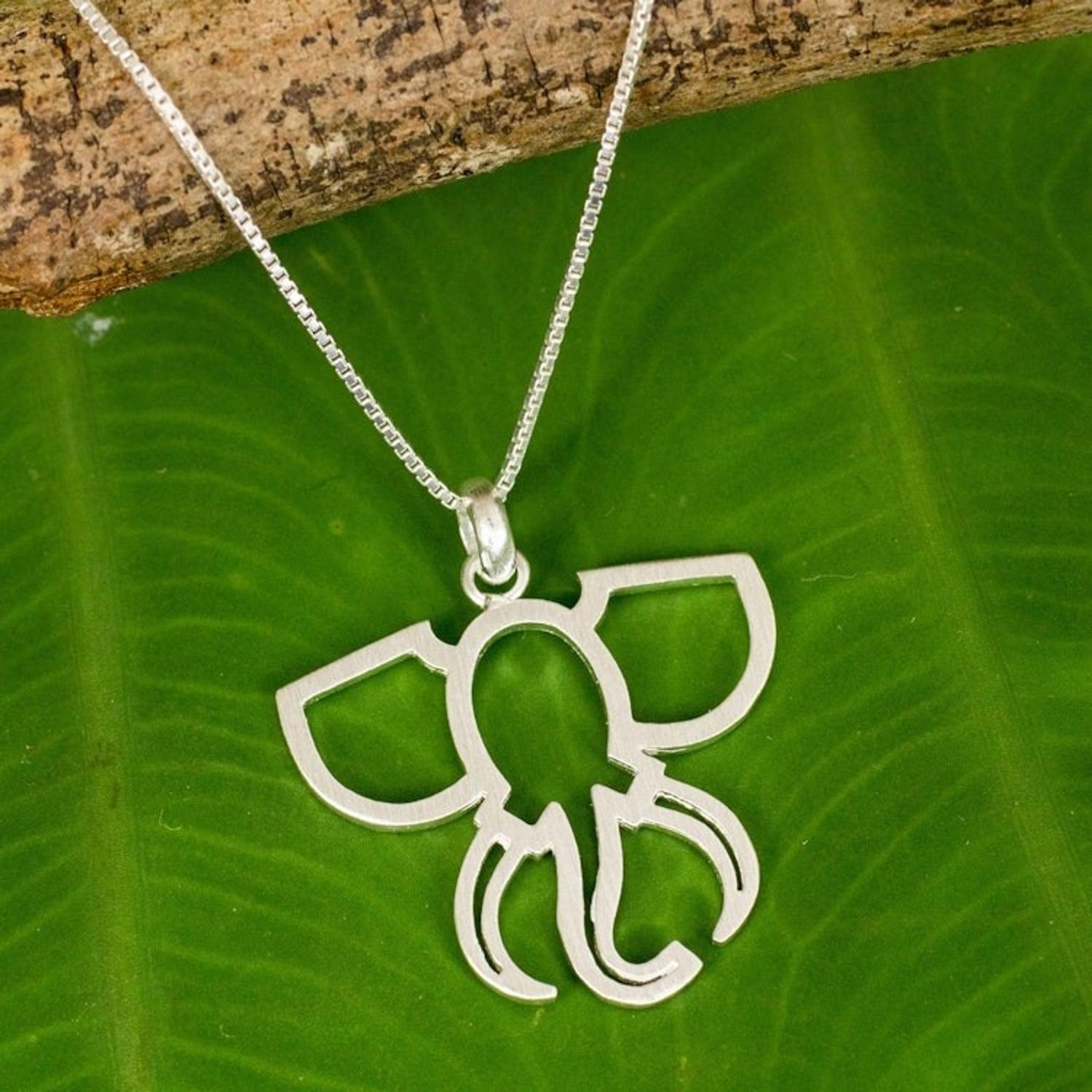 This 'Gentle Elephant' pendant necklace by Independent Artisans is a beautiful tribute to the beloved creatures of Thailand. Designed by Jantana, an artisan born into a family of jewelers, this piece captures the graceful form of an elephant in brushed satin sterling silver. The soft, luminous finish of the pendant highlights its elegant silhouette, while a delicate Venetian box chain provides a perfect foundation. This necklace is more than just an accessory—it’s a symbol of the gentle spirit of these magnificent animals and a testament to Jantana’s commitment to preserving her family's legacy. This piece is a beautiful way to honor the artistry of Thai jewelry while celebrating a meaningful cultural symbol.