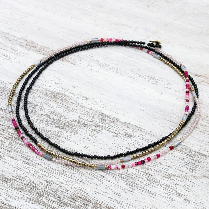 Extra Long Beaded Strand Necklace in Pink from Thailand 'Midnight Love in Pink'