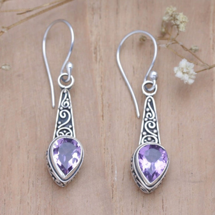 Faceted One-Carat Amethyst Dangle Earrings Crafted in Bali 'Purple Balinese Heaven'