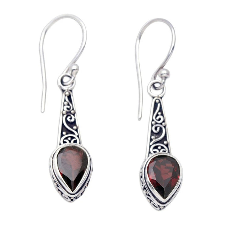 Faceted Two-Carat Garnet Dangle Earrings Crafted in Bali 'Crimson Balinese Heaven'