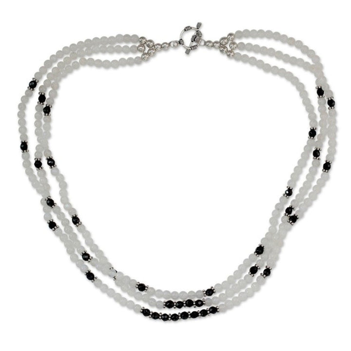 Fair Trade Artisan Crafted Moonstone and Onyx Necklace 'Moonlit Serenade'