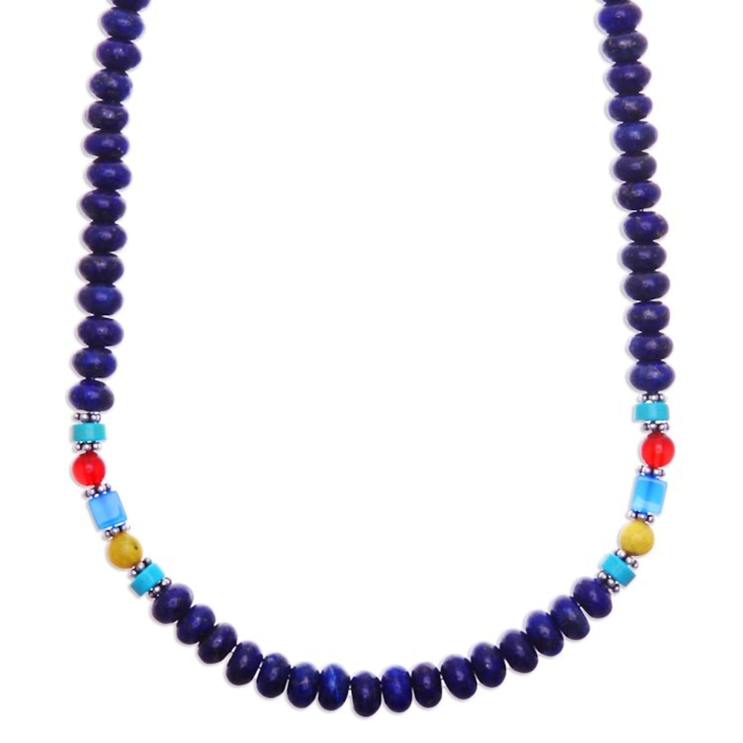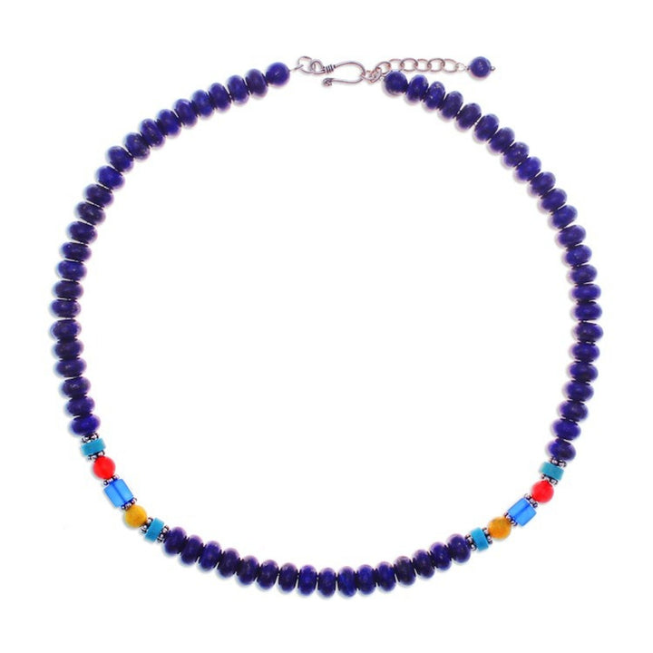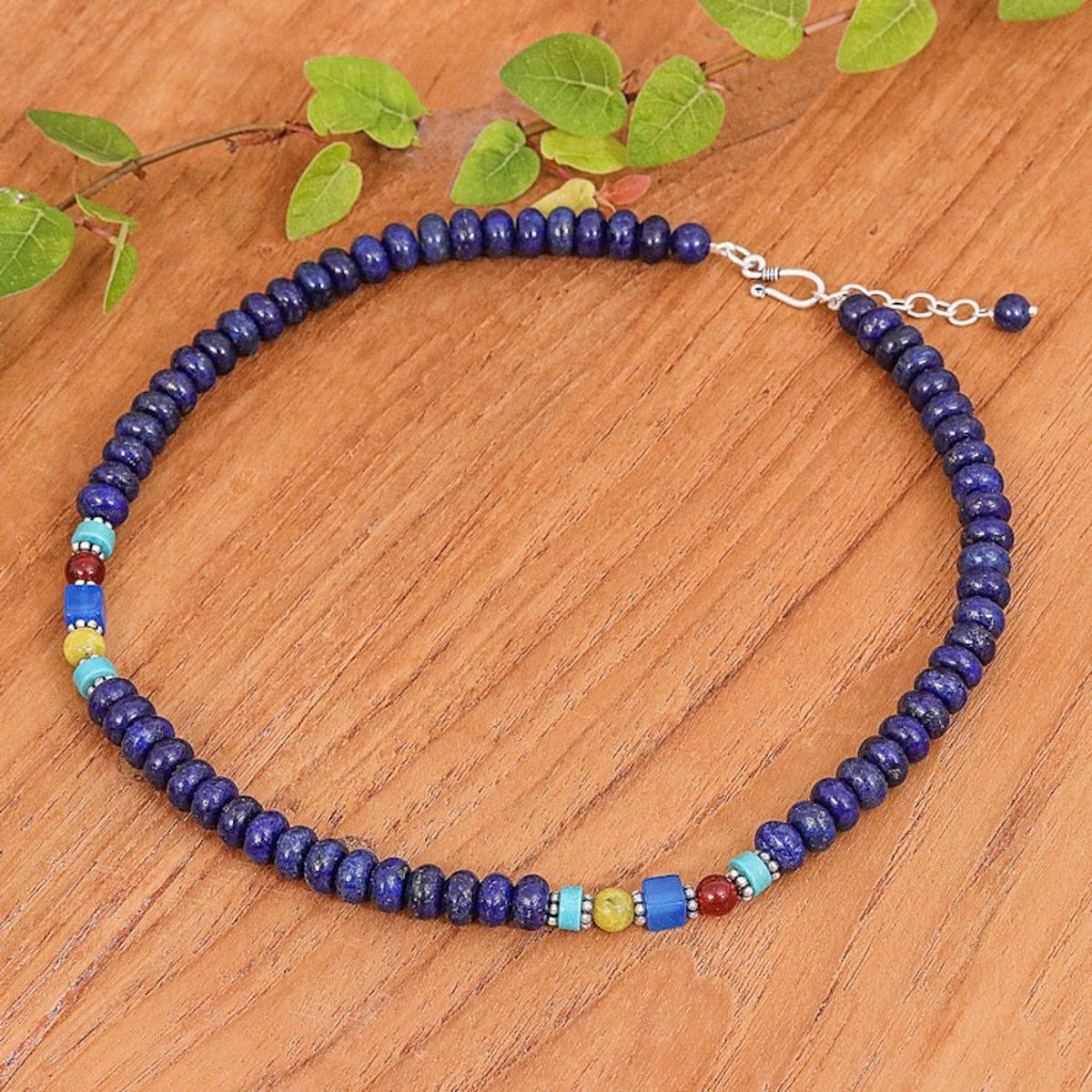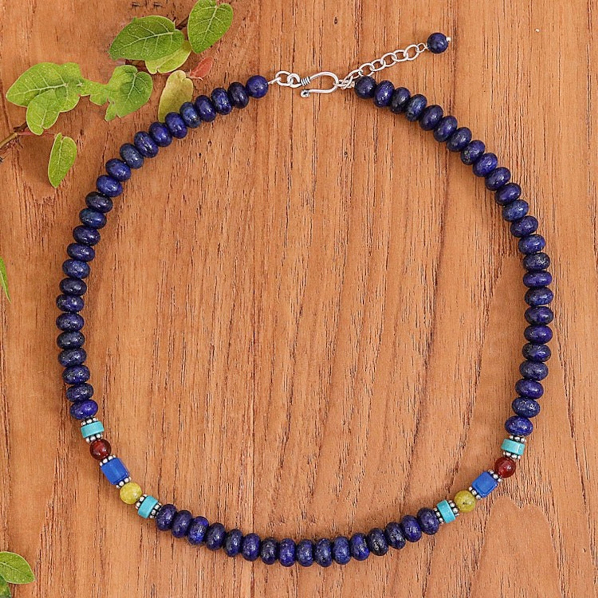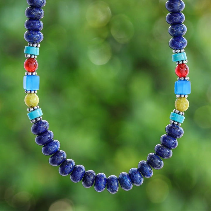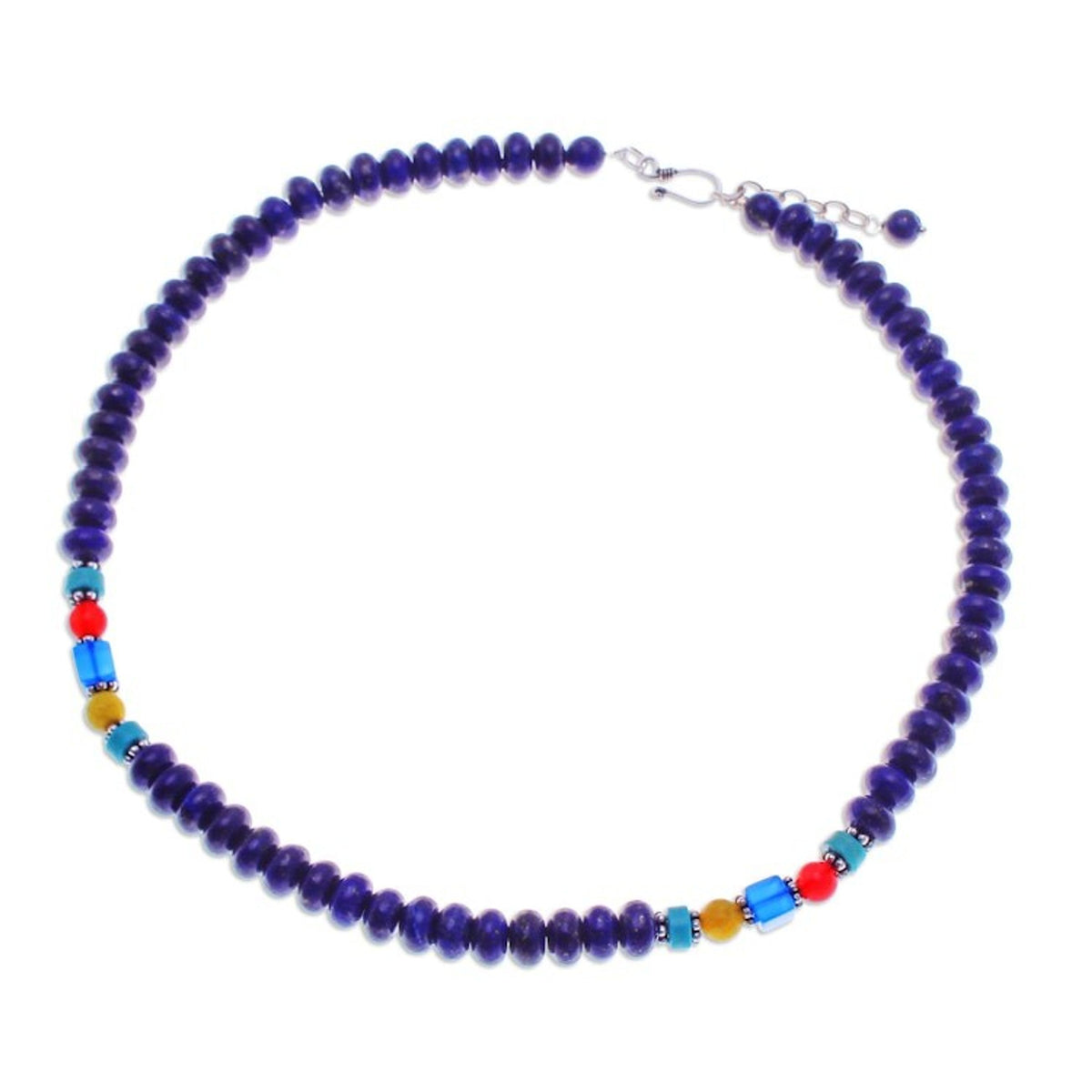 Fair Trade Blue Multi-Gemstone Beaded Necklace from Thailand 'Mystic Firmament'