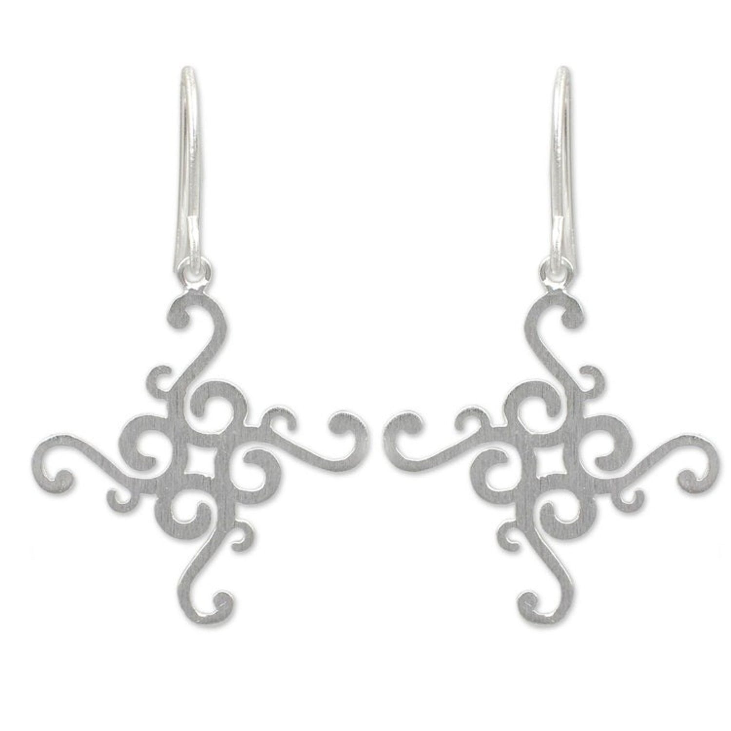 Handcrafted in Thailand, these hook earrings are made of sterling silver with a brushed-satin finish, measuring 1.5 inches long by 0.9 inches wide and weighing 0.08 ounces.