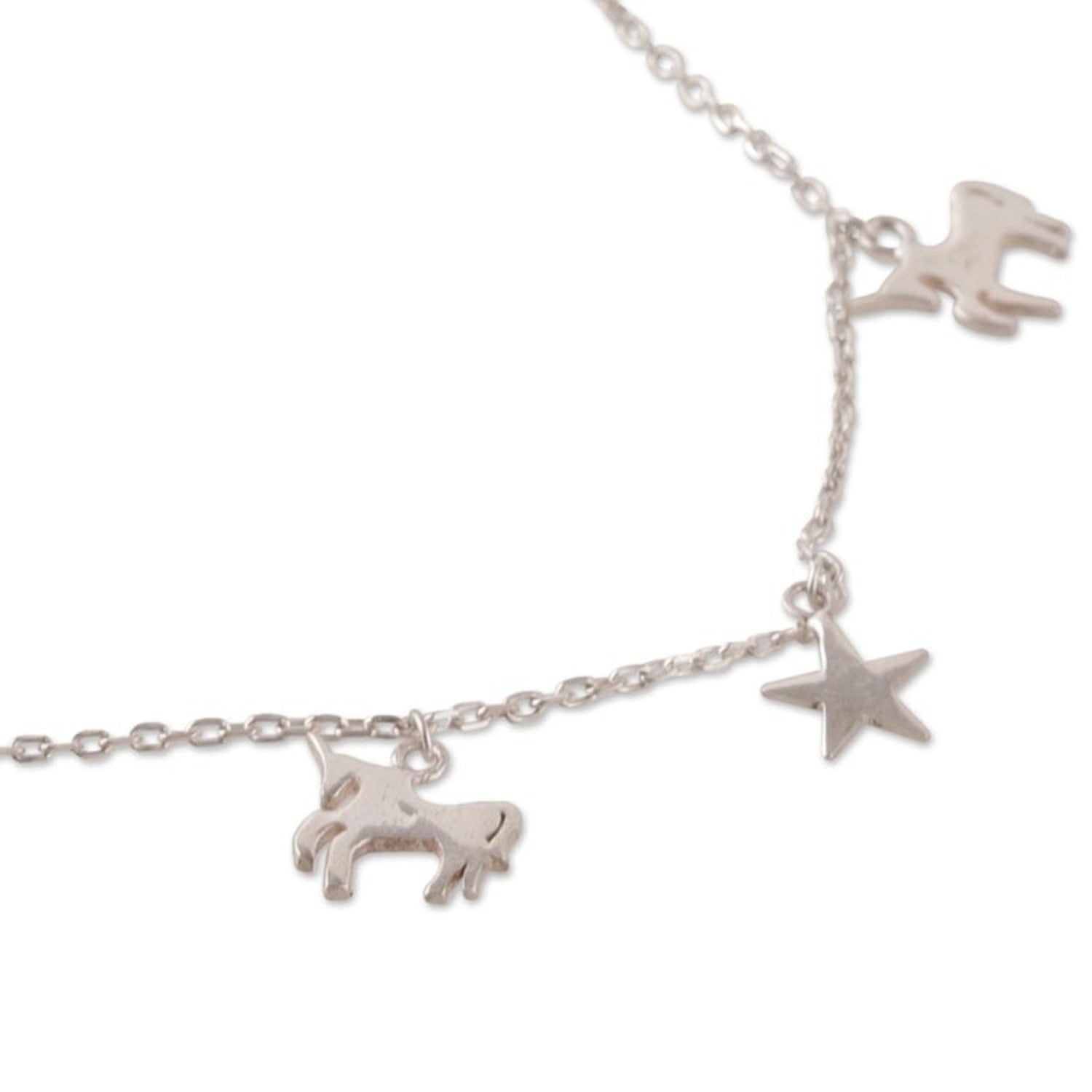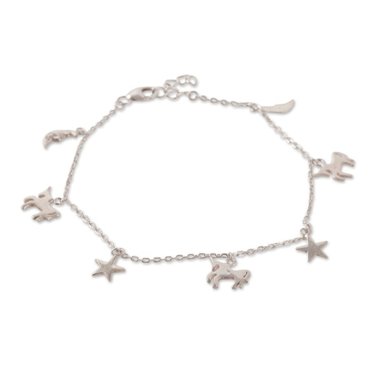 Fair Trade Horse and Star Sterling Silver Charm Bracelet 'Prairie Luck'