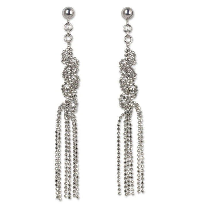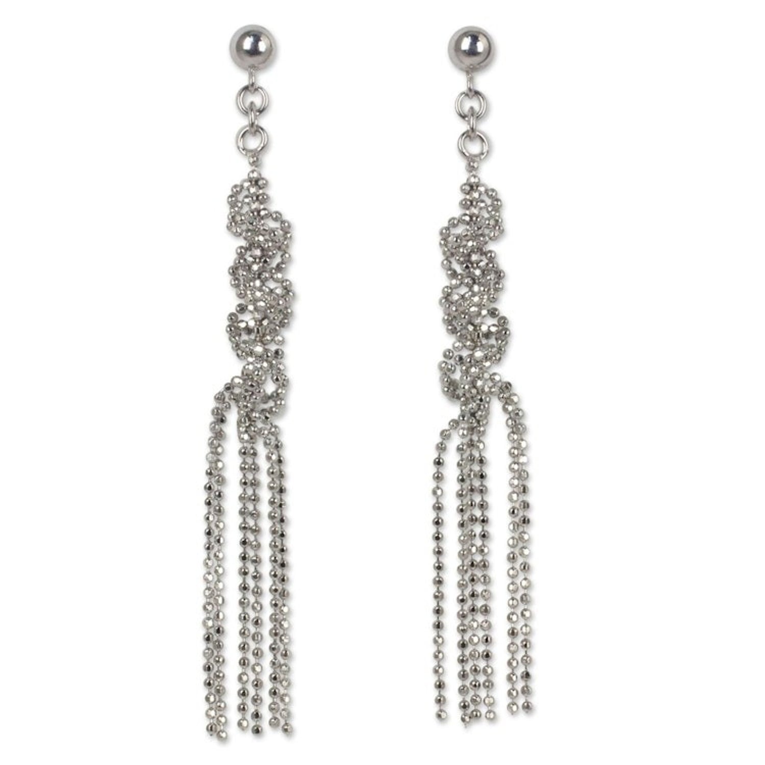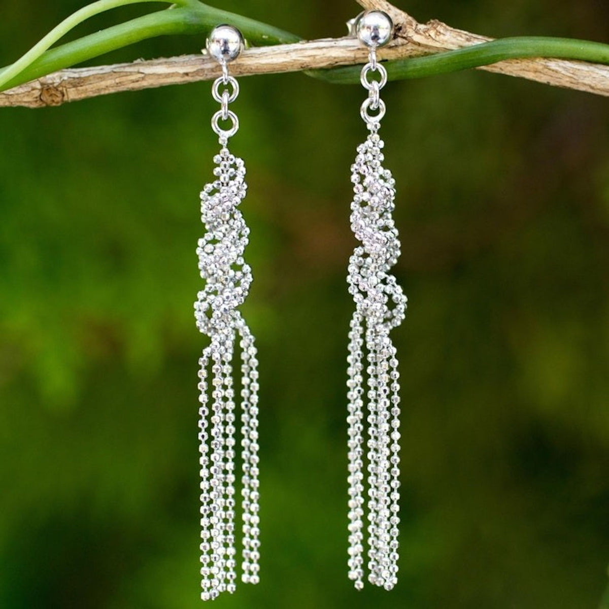 Fair Trade Sterling Silver Ball Chain Waterfall Earrings 'Helix Fringe'