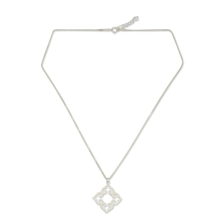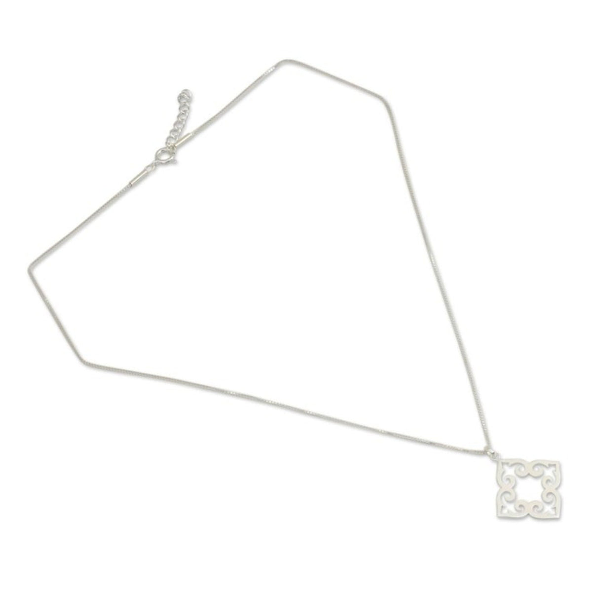 Crafted in Thailand, this necklace is made from sterling silver with a combination finish. The Venetian/Box chain measures 18 inches long and 1 mm wide with a 1-inch extender and a spring ring clasp. The pendant measures 1.1 inches long by 1.1 inches wide and weighs 0.15 ounces.