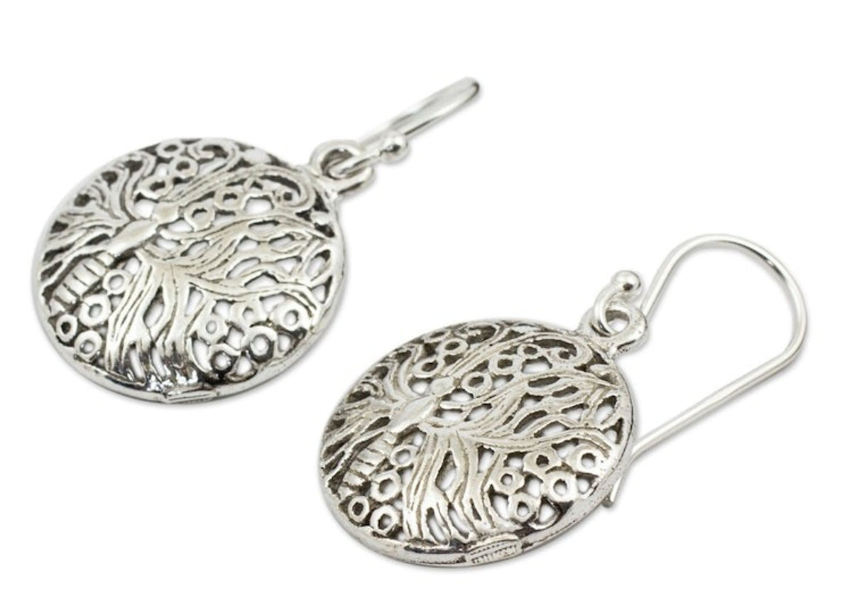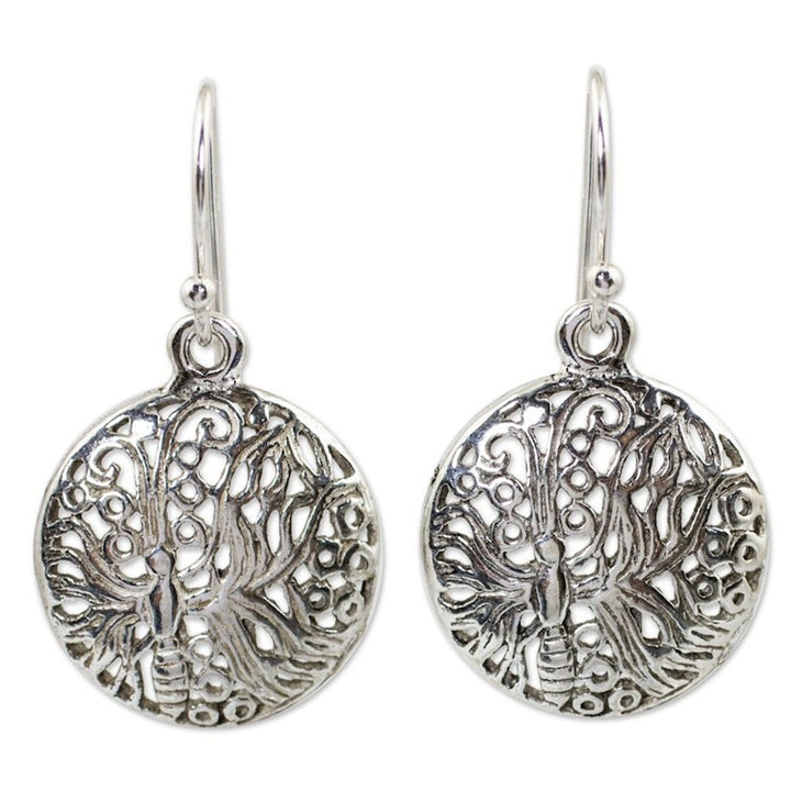 These Butterfly Moon filigree butterfly earrings by Independent Artisans are beautifully feminine. Crafted by hand in shining silver, delicate filigree butterflies pose by moonlight. The lightweight and versatile design is intended for daily wear, reflecting a blend of contemporary simplicity with echoes of the past. These earrings are a testament to the artisan's journey, combining a love of jewelry with hands-on knowledge and travel-inspired styles.
