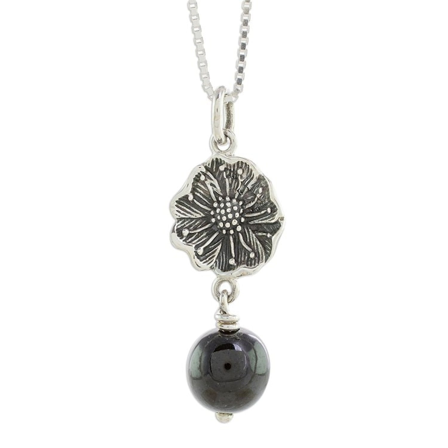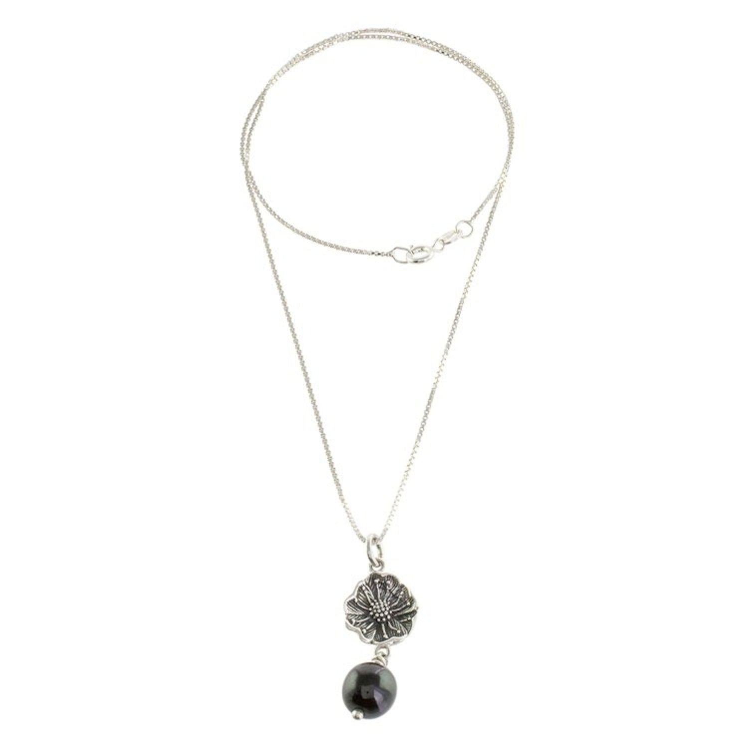 Floral Black Jade Pendant Necklace from Guatemala 'Guatemalan Flower'
