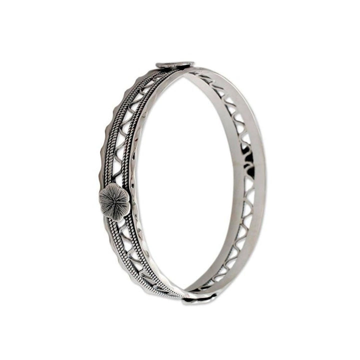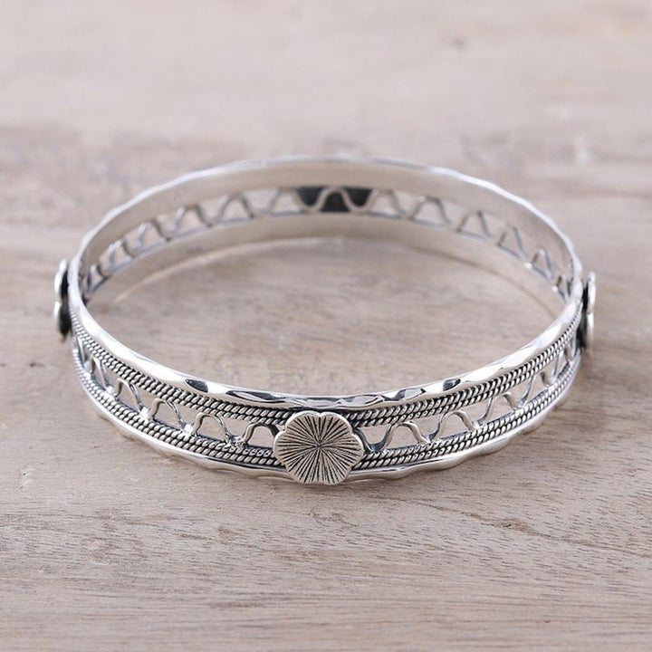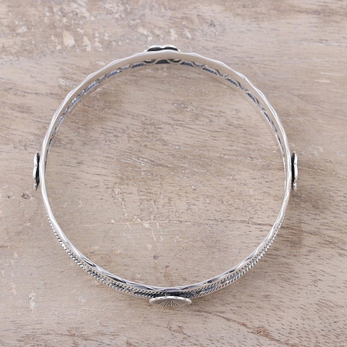 Floral Sterling Silver Bangle Bracelet from India 'Floral Wave'
