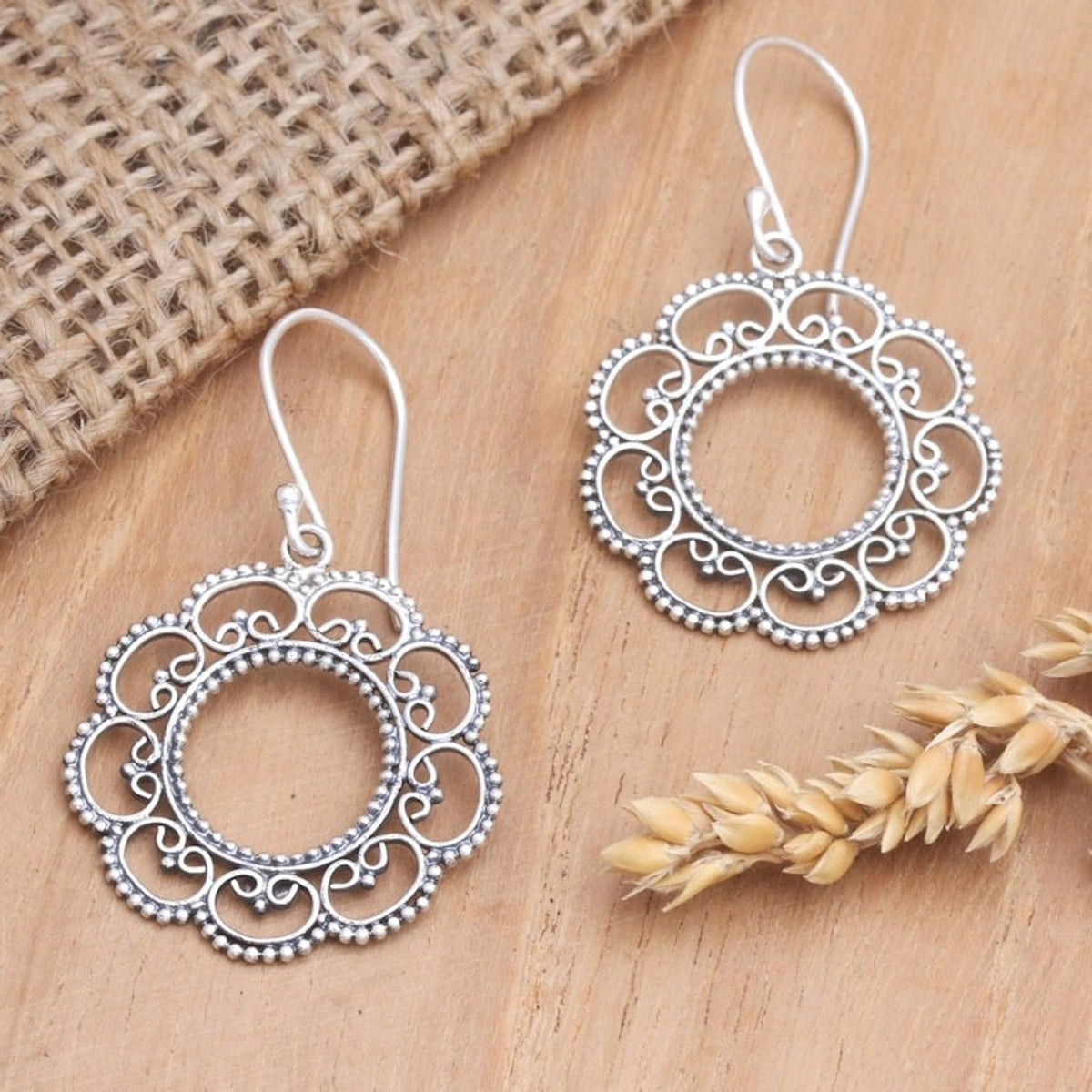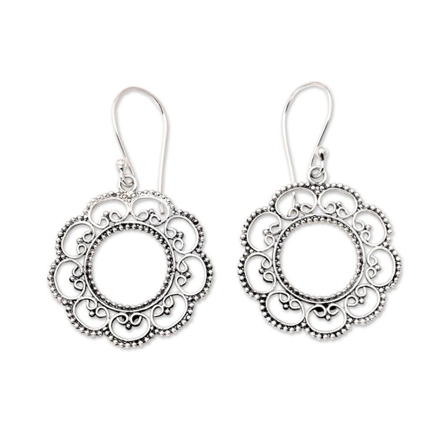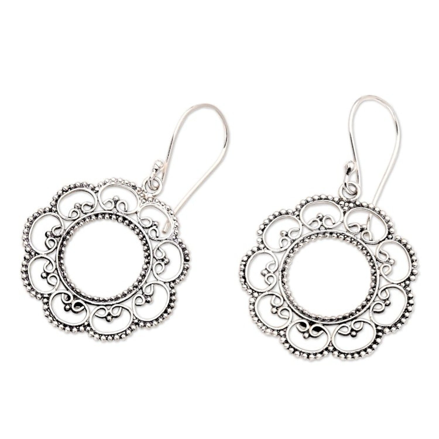 Floral Sterling Silver Dangle Earrings 'Lacy Sunflower'