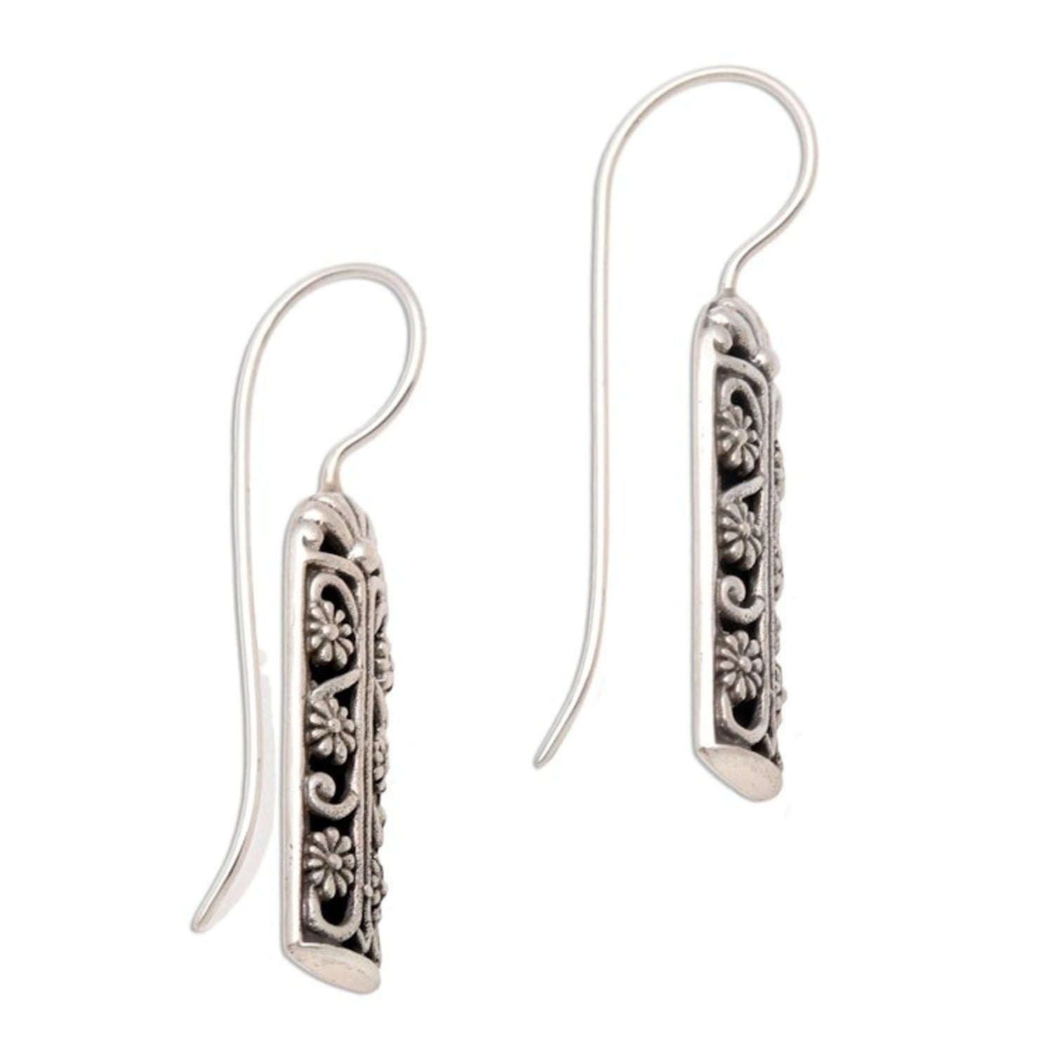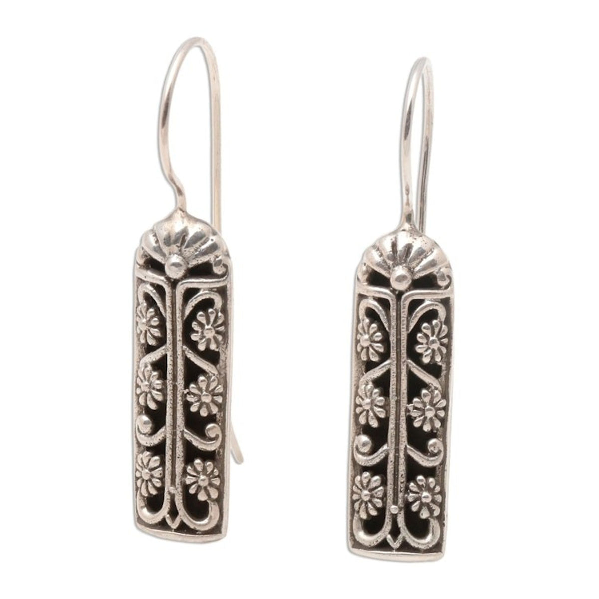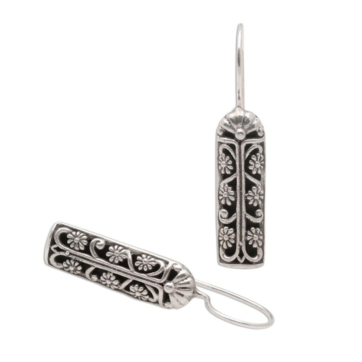 Floral Sterling Silver Drop Earrings 'Jasmine Scrolls'