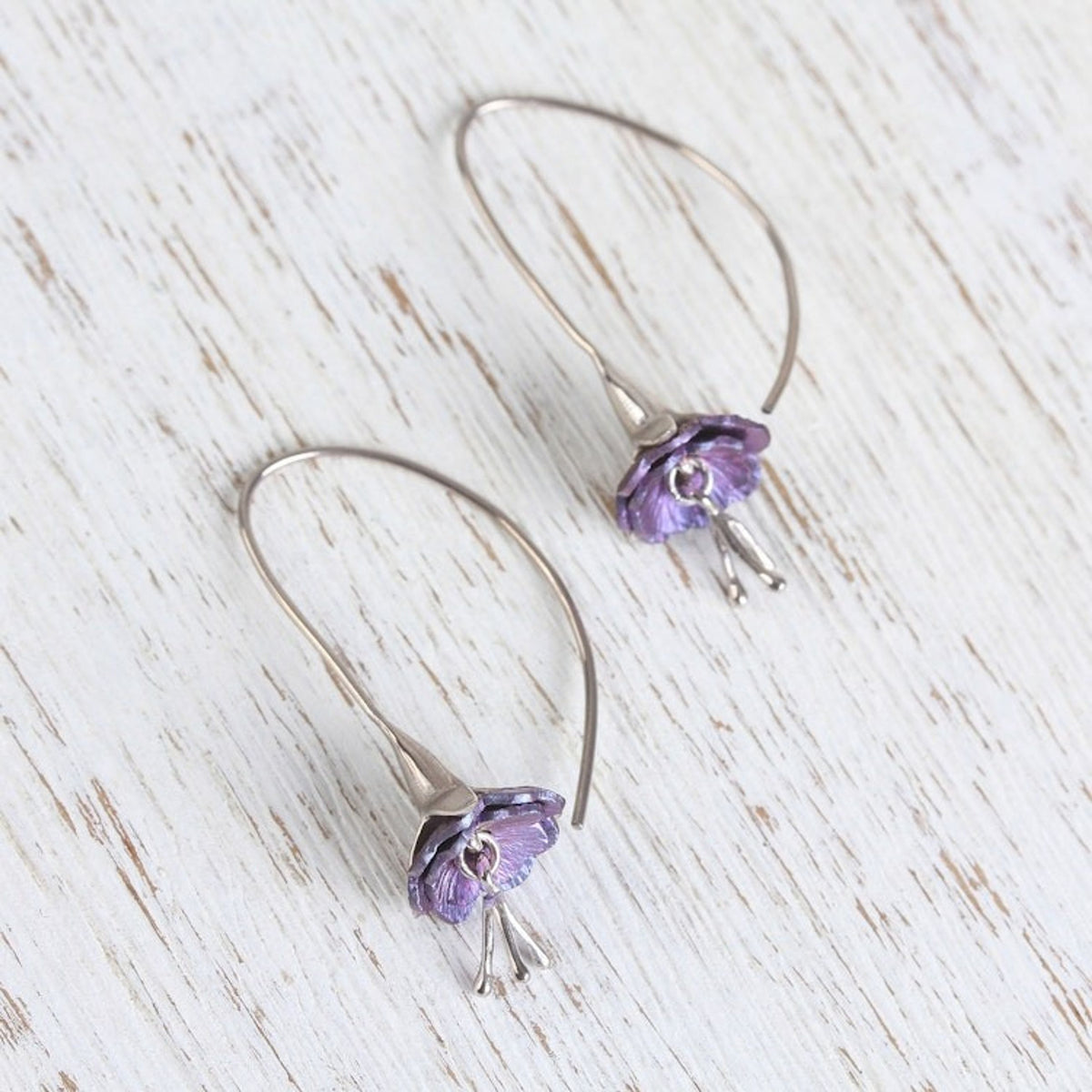 Floral Titanium Plated Sterling Silver Drop Earrings 'Sleepy Flowers'