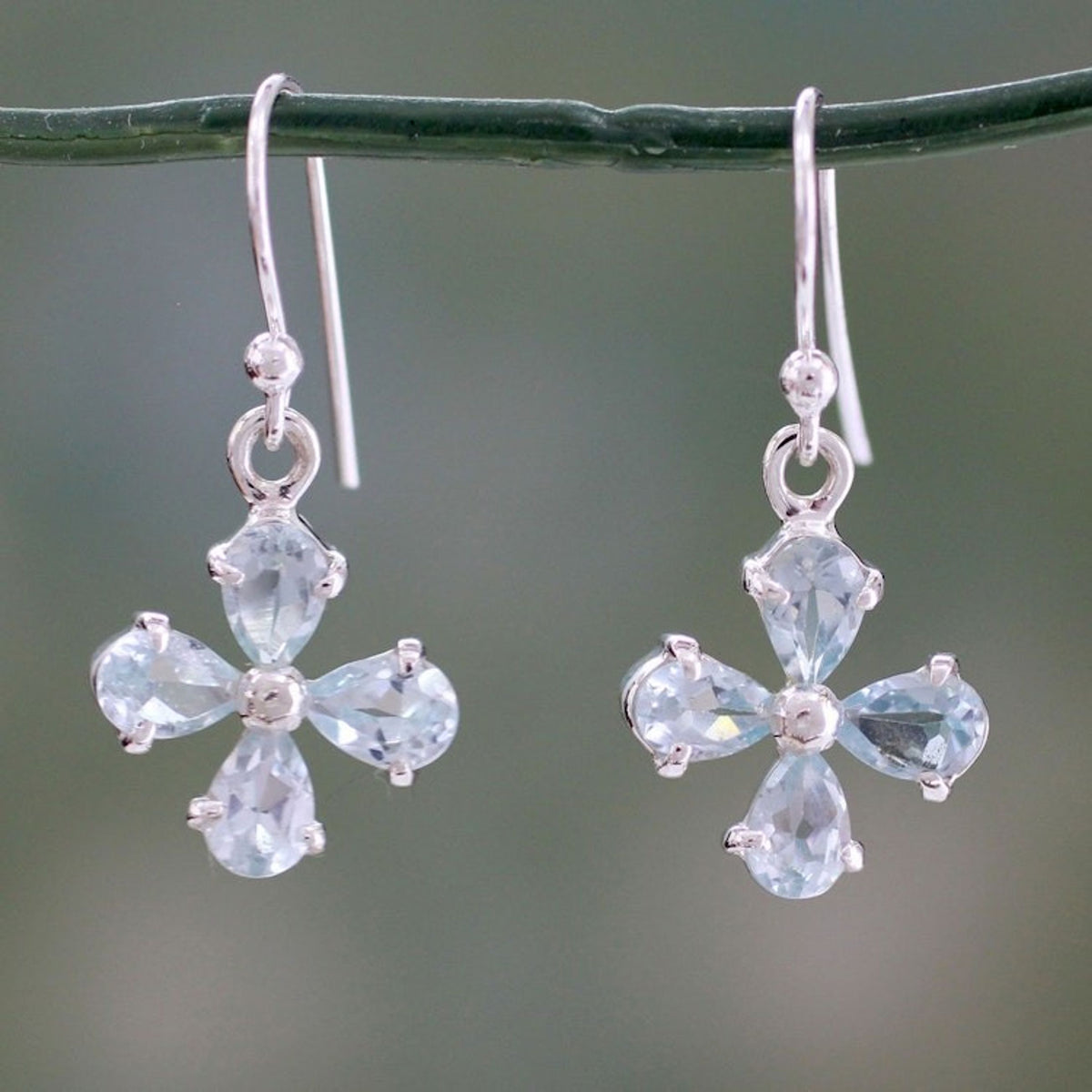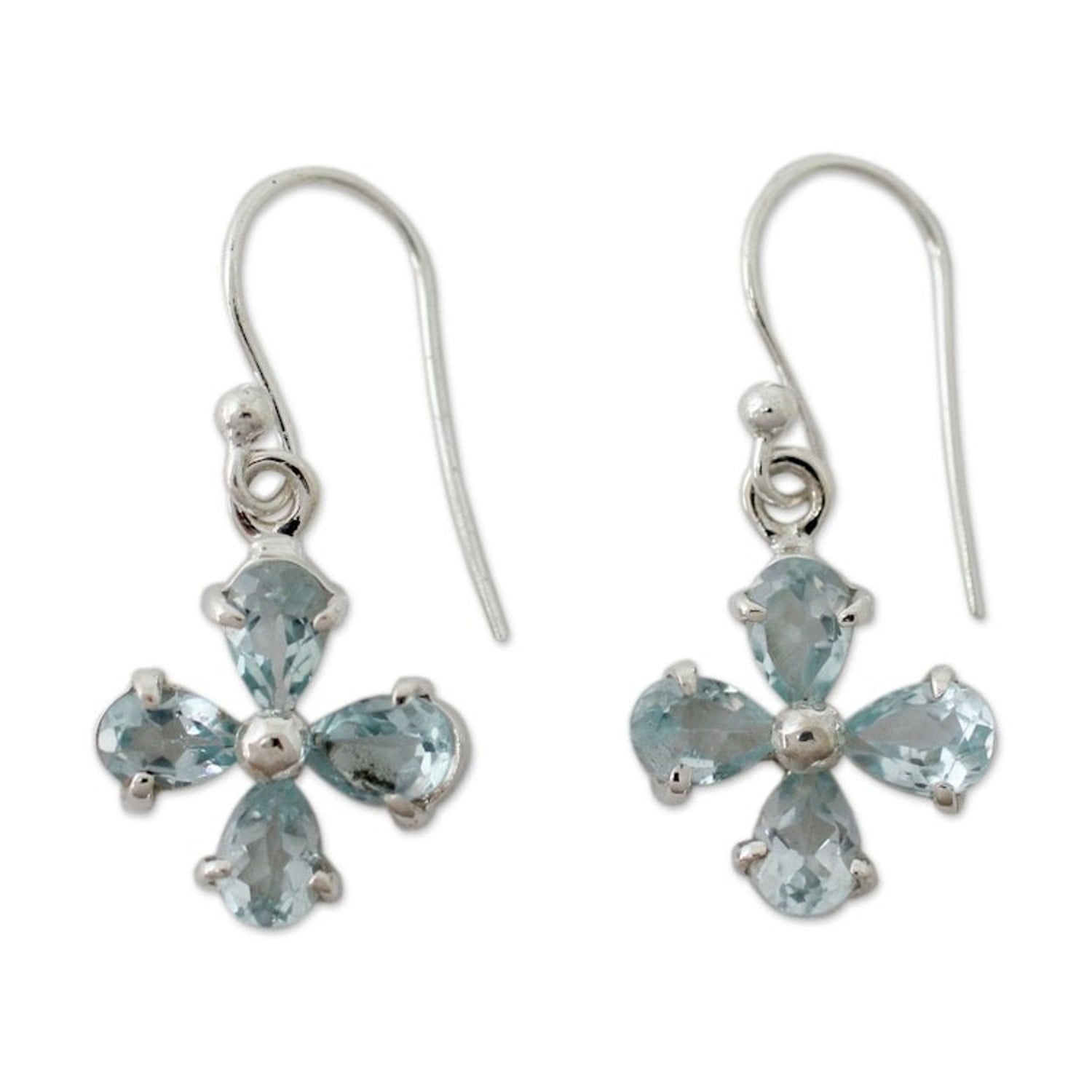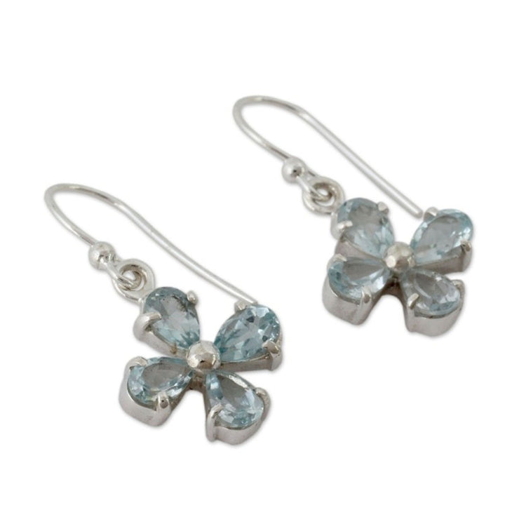 Flower Shaped Blue Topaz Dangle Earrings in 925 Silver 'Sky Blue Blossom'