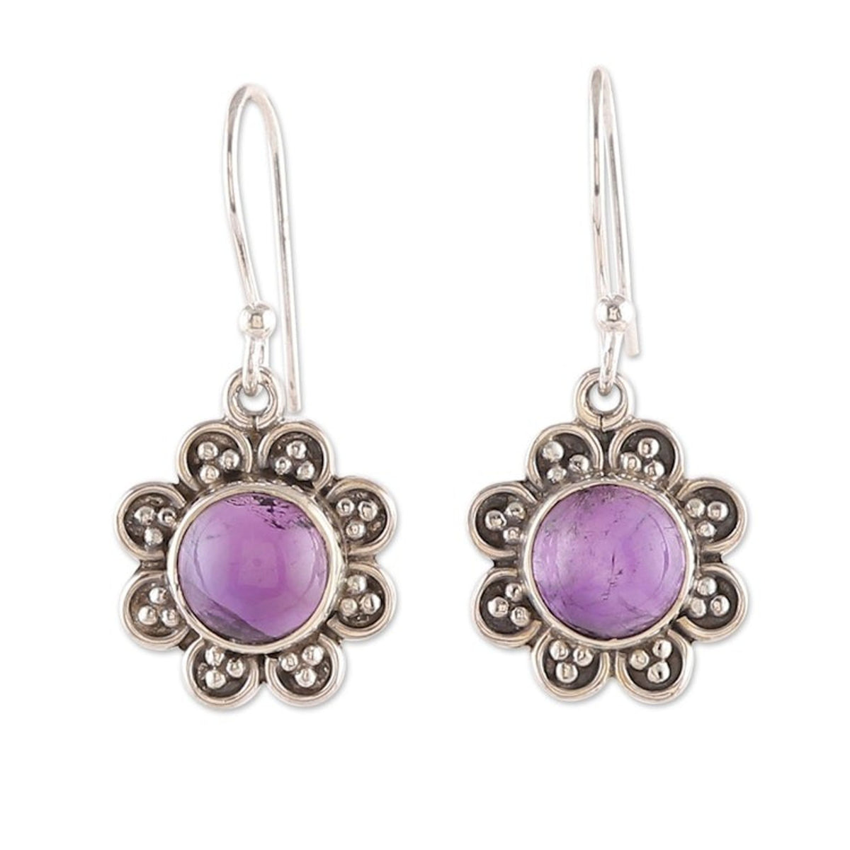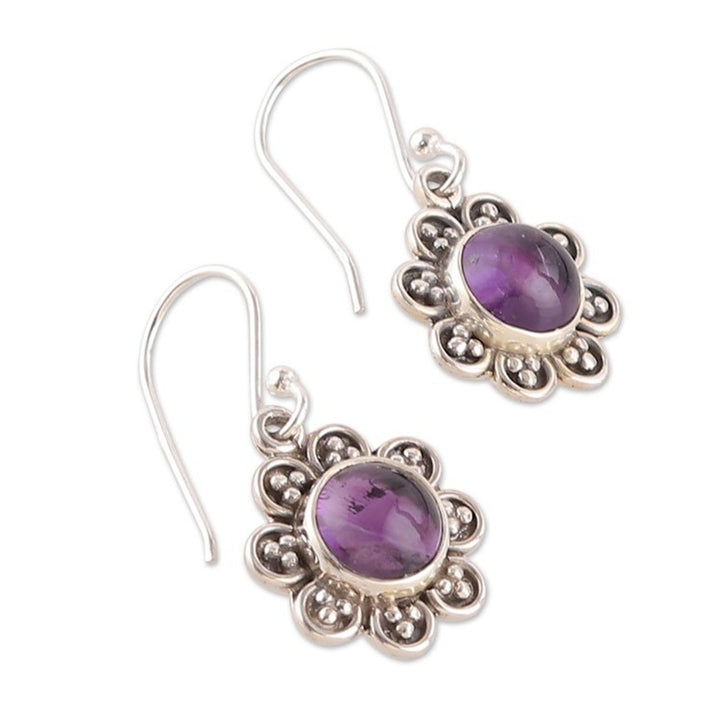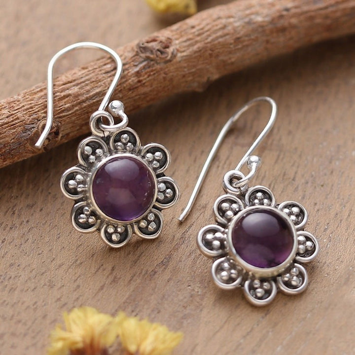 Flower-Shaped Sterling Silver and Amethyst Dangle Earrings 'Wisdom in Petals'