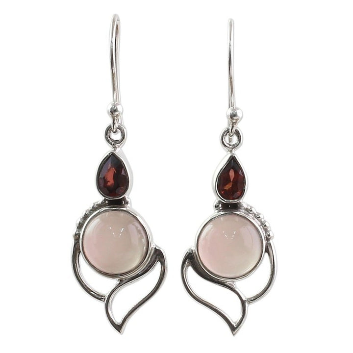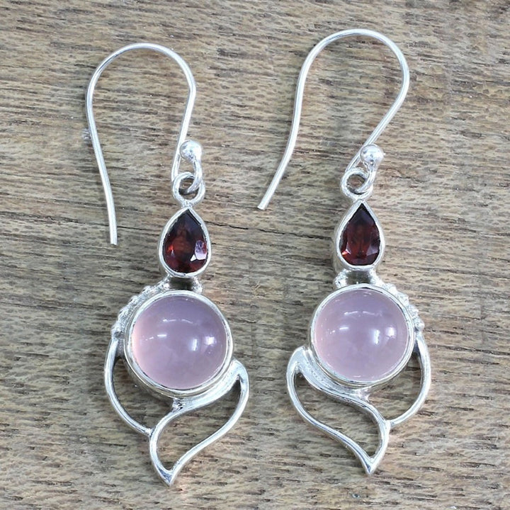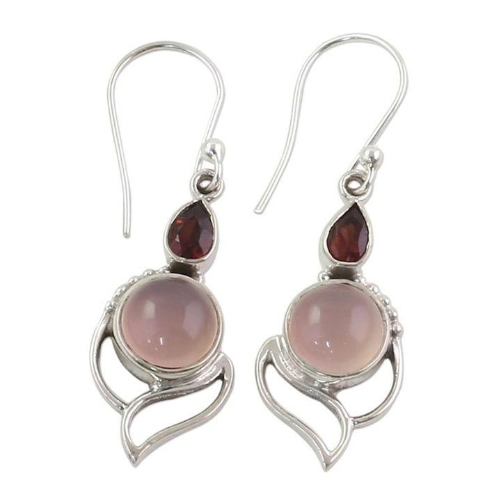 Garnet and Chalcedony Dangle Earrings from India 'Pink Crest'