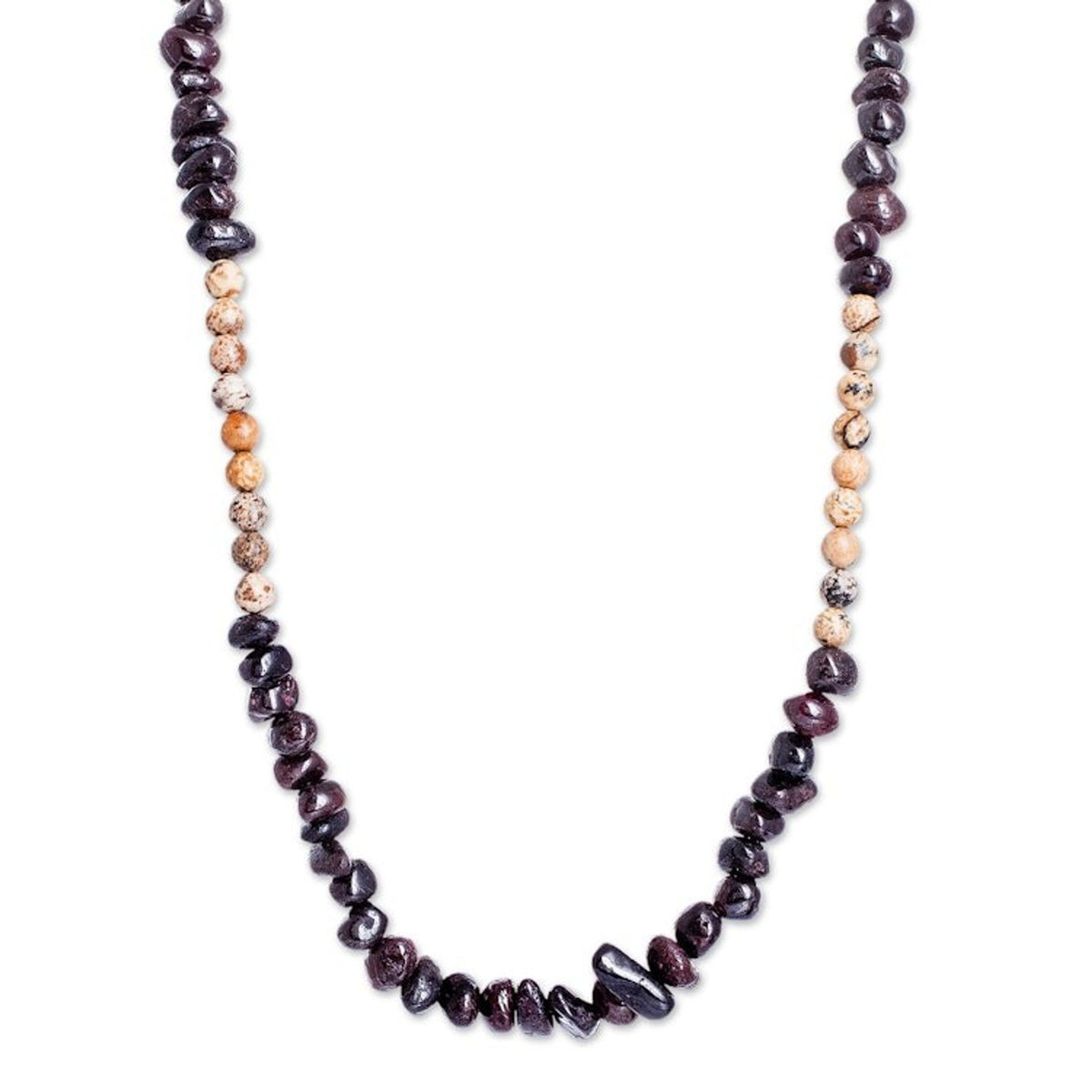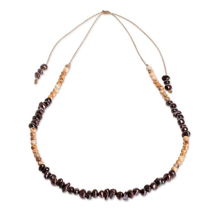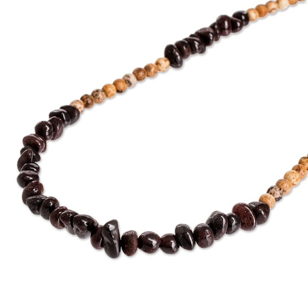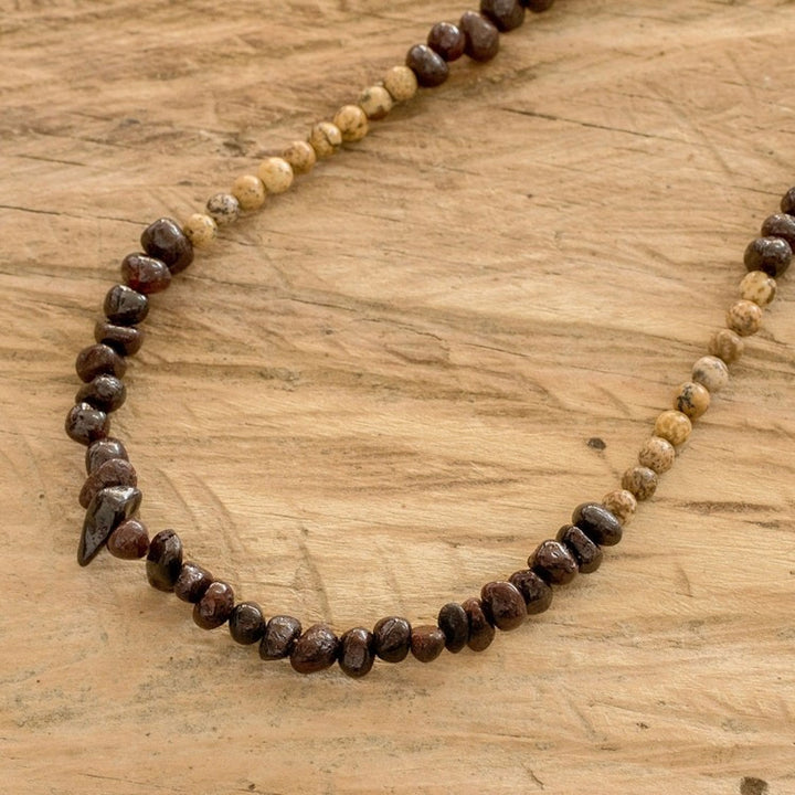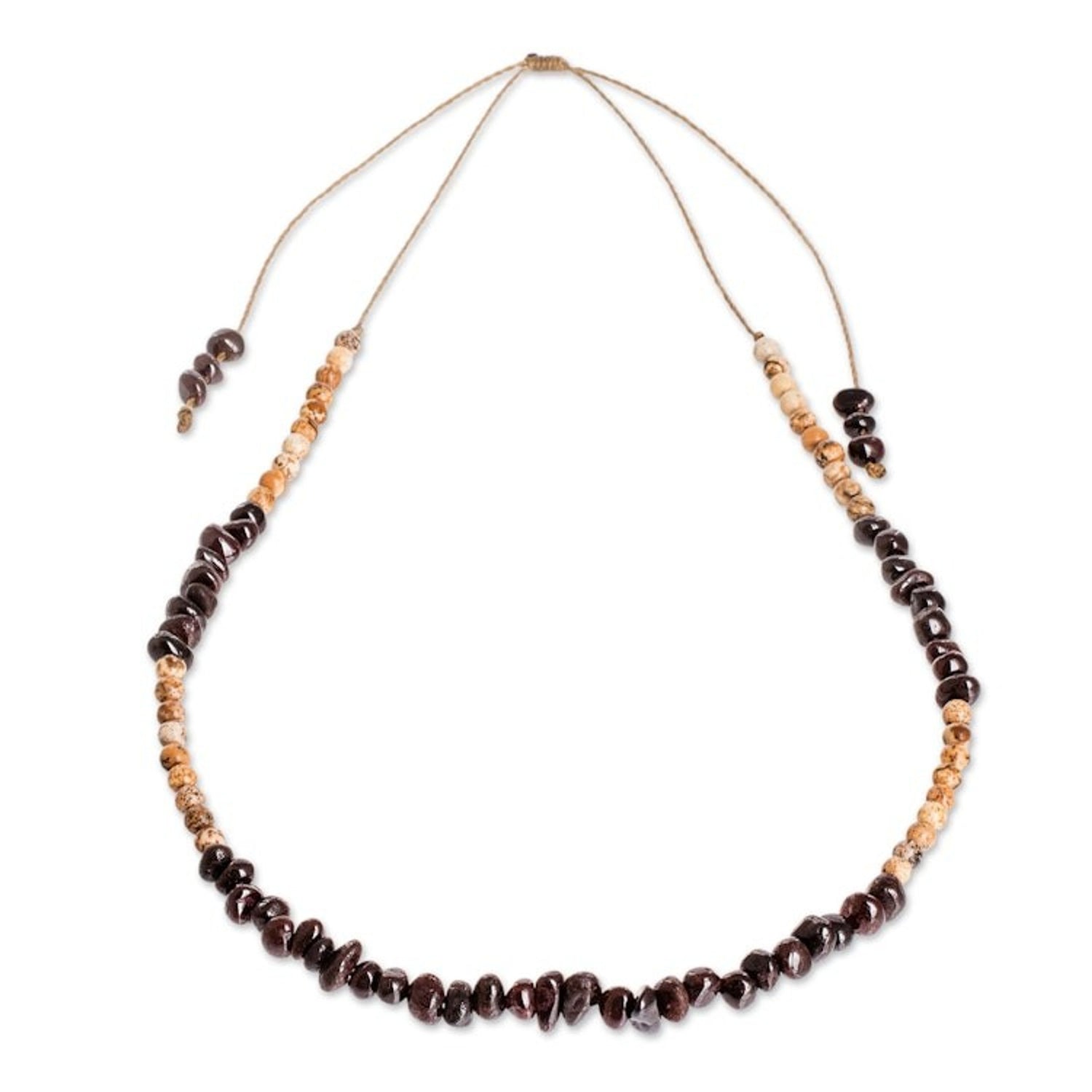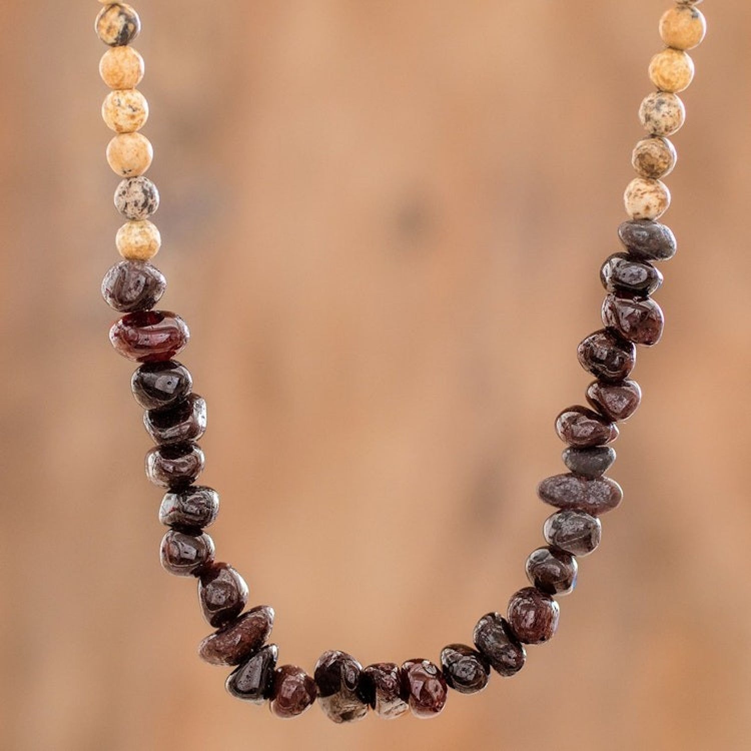 Garnet and Jasper Beaded Necklace Handmade in Guatemala 'Familiar Sands'