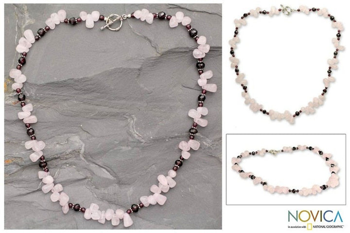 Garnet and rose quartz strand necklace 'Love's Serenade'