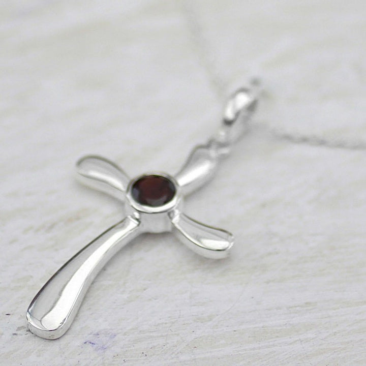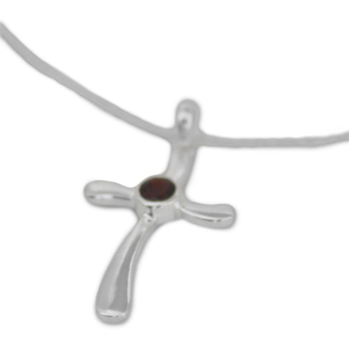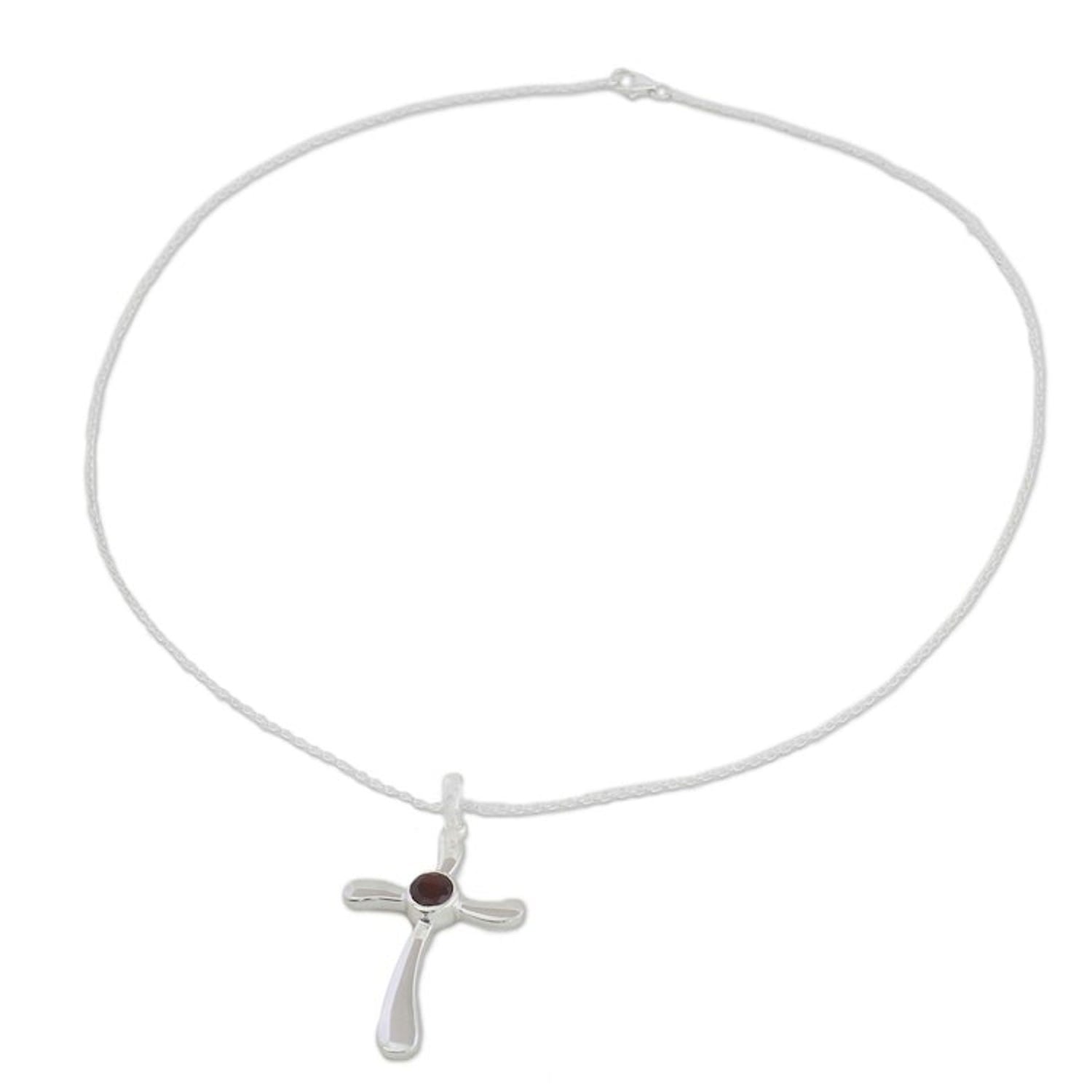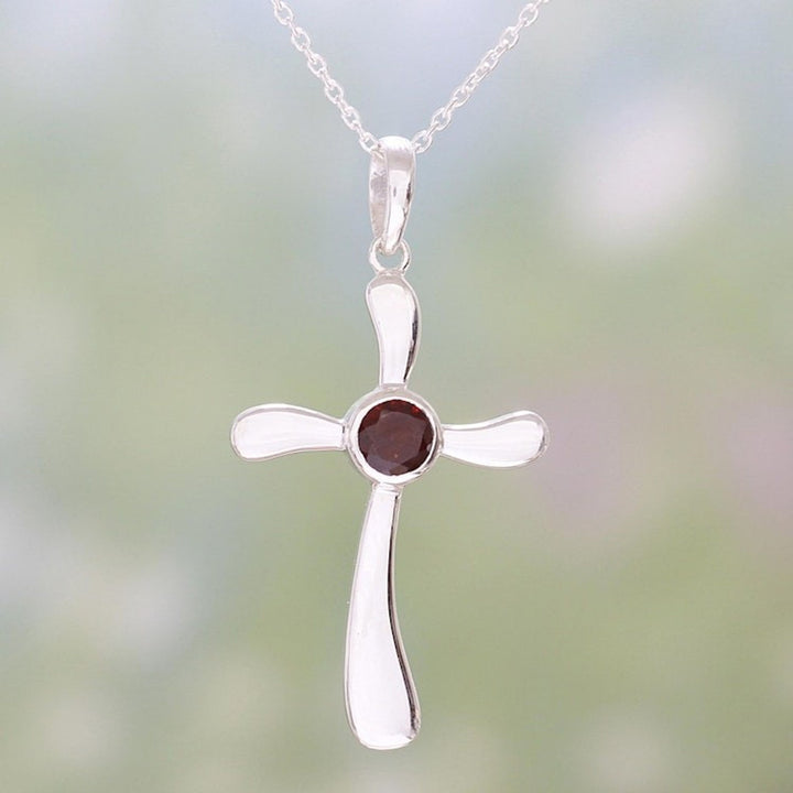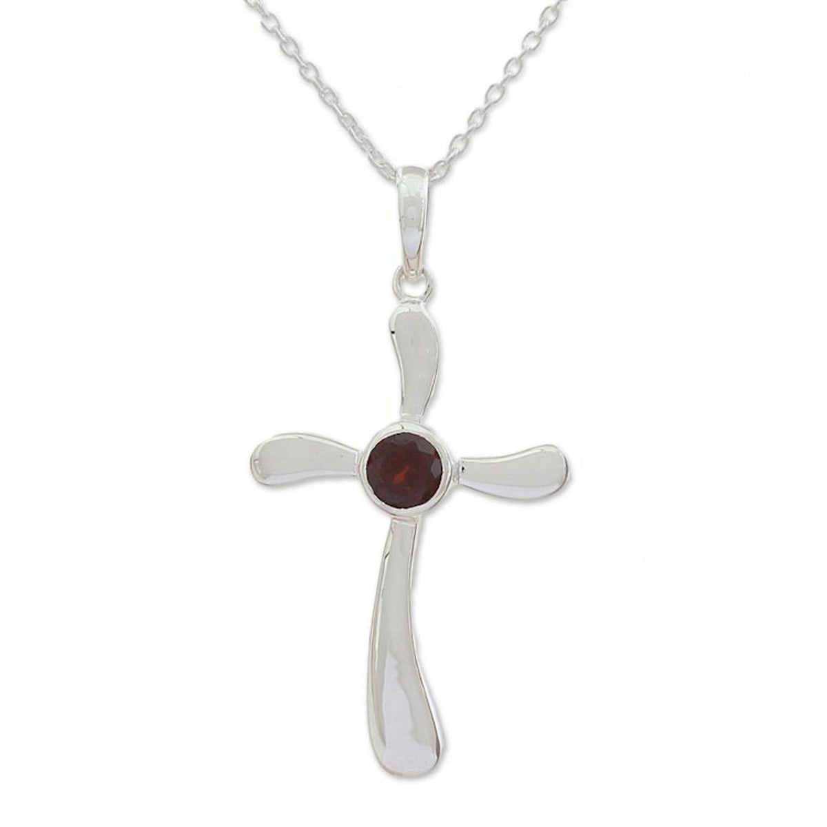 Garnet and Sterling Silver Indian Cross Pendant Necklace 'Heavenly Cross in Red'
