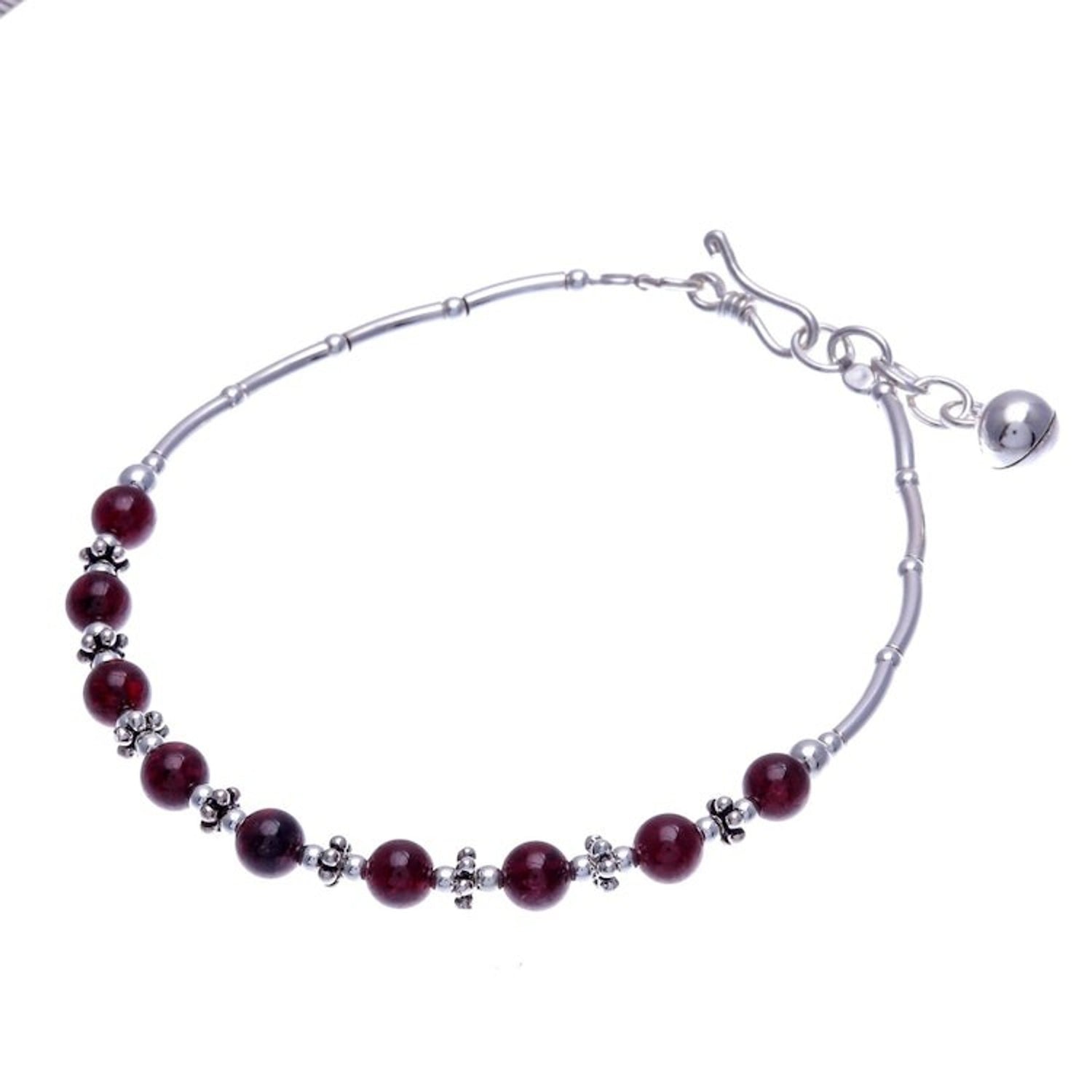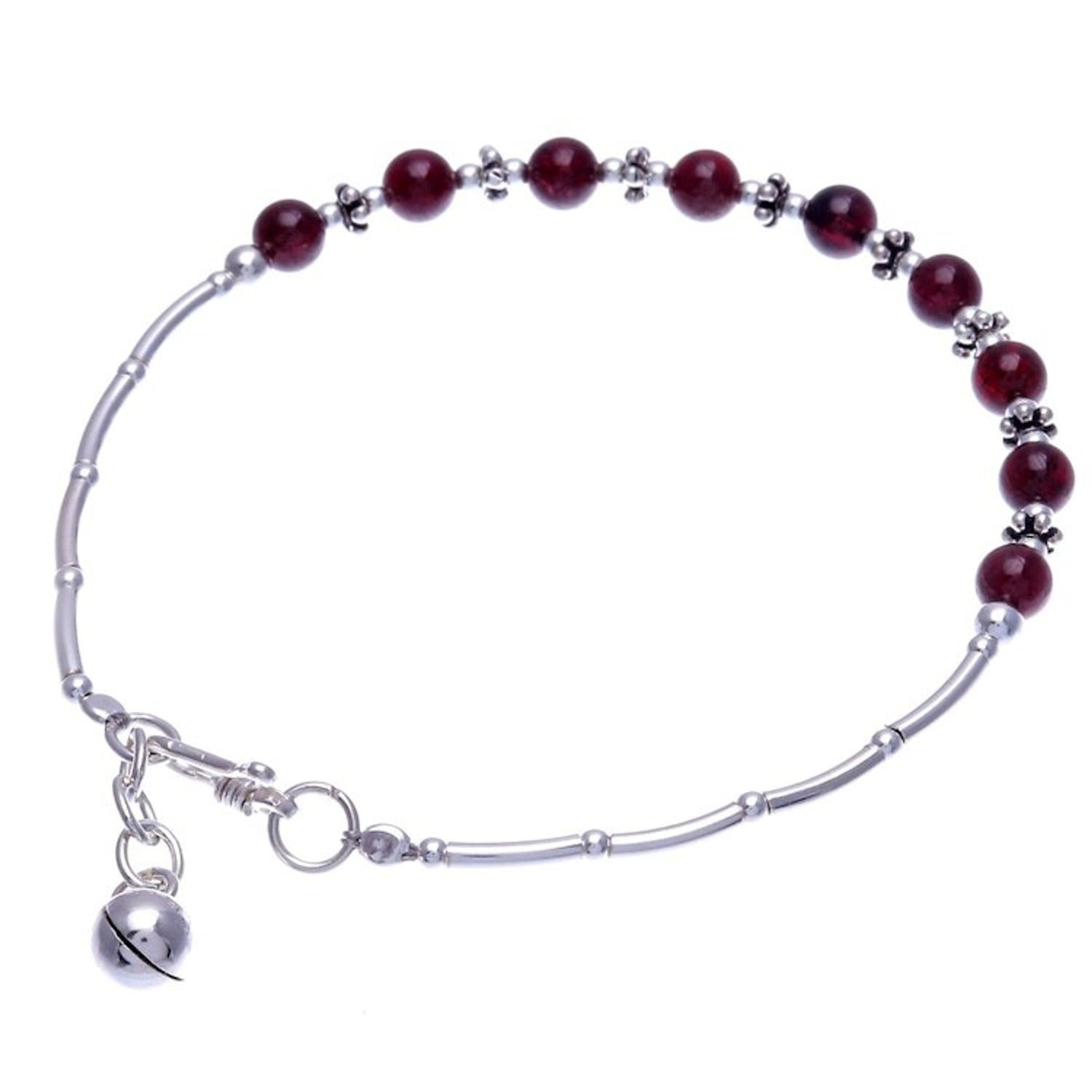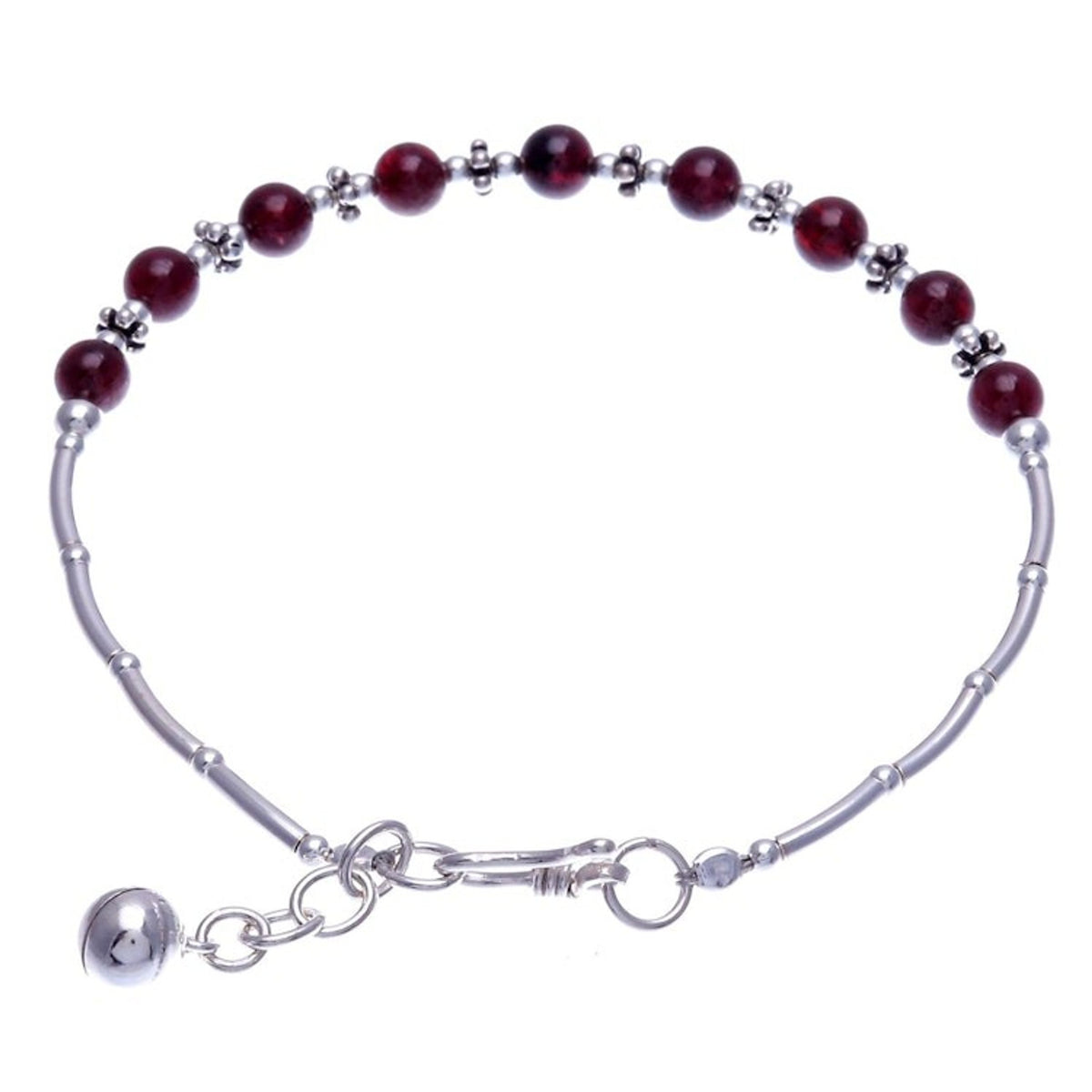Handcrafted from 950 silver, 925 sterling silver, and garnet with a combination finish. The bracelet measures 7 inches L x 4 mm W with a 0.6-inch extender and 0.4-inch charms. Natural stone color and variegation will vary.