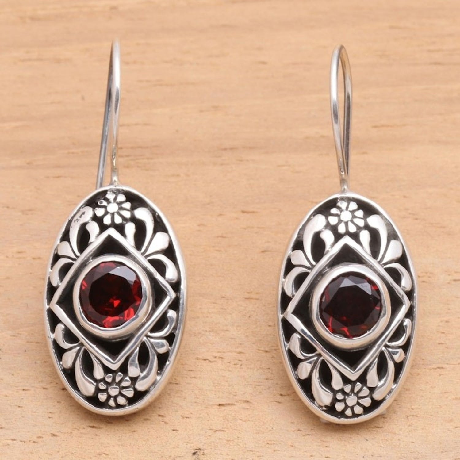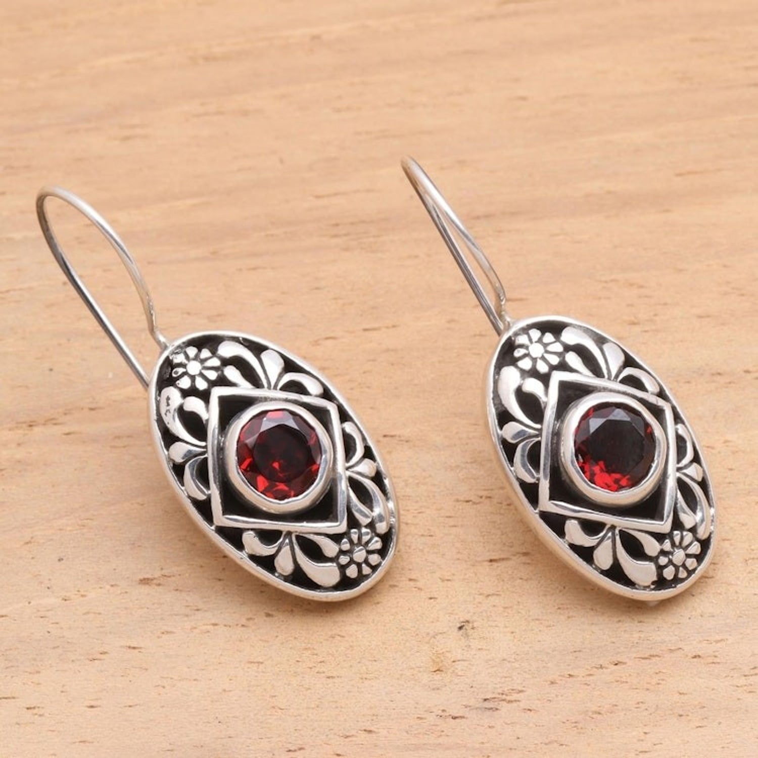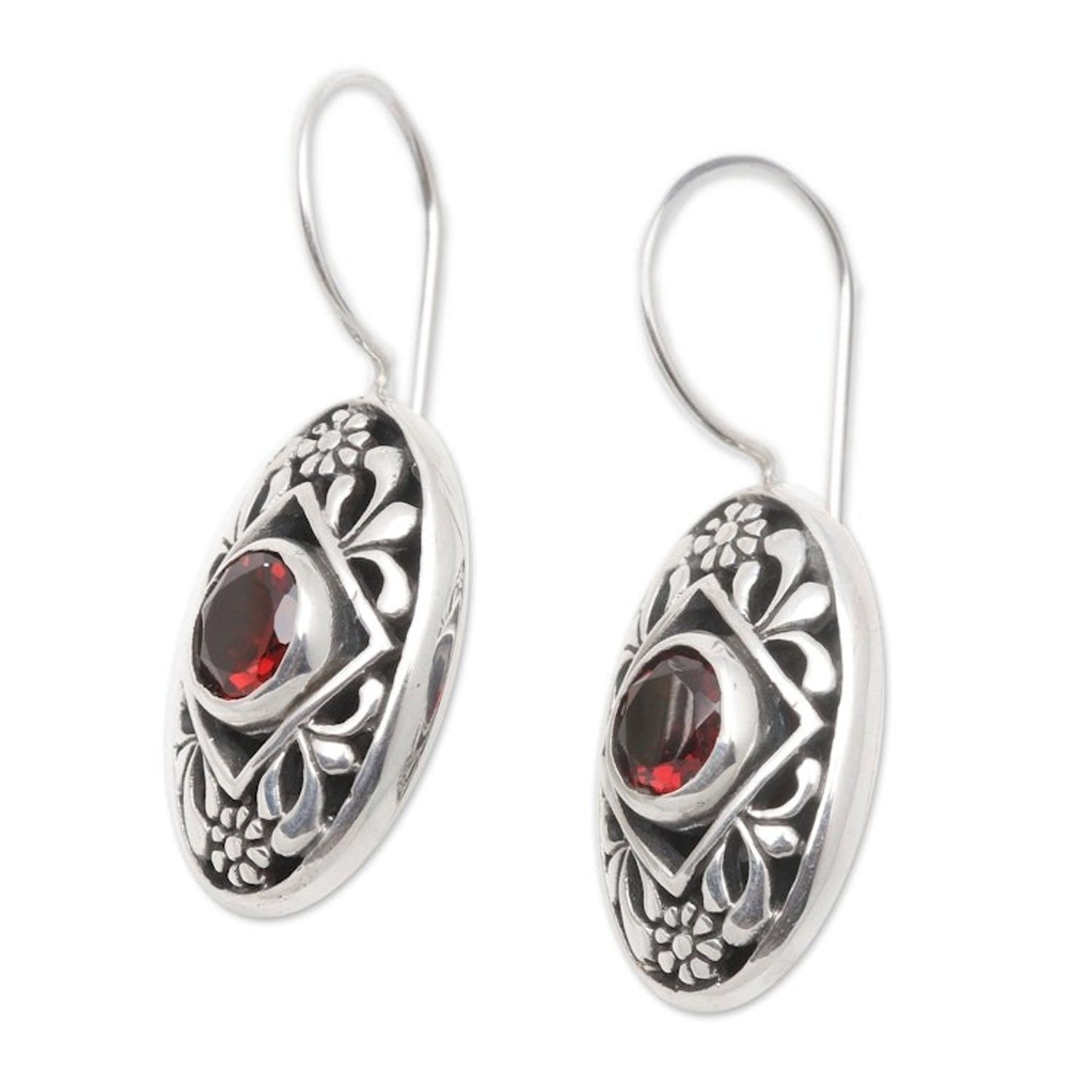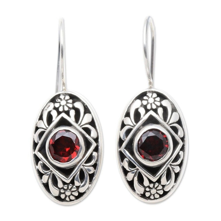 These Garnet drop earrings 'Desire' by Yuniati are centered by glowing garnet and cast a spell of enchanted beauty. The handcrafted sterling silver earrings feature a flower design and reflect the artisan's creative passion and dedication to her ancestors' legacy.