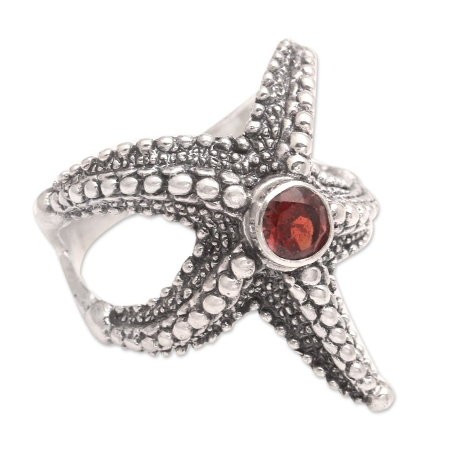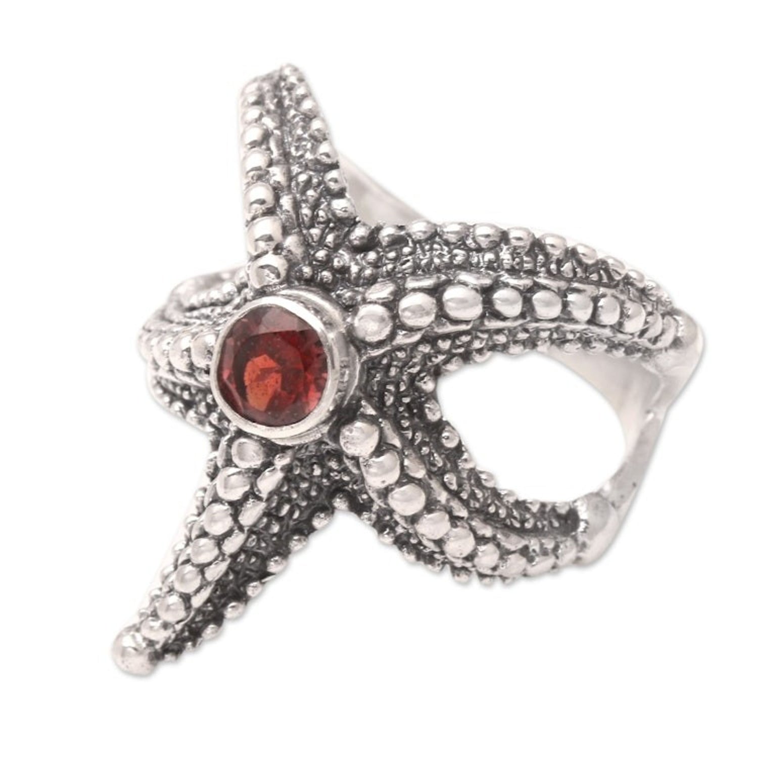 Garnet Sterling Silver Starfish Cocktail Ring from Bali 'Red Starfish'