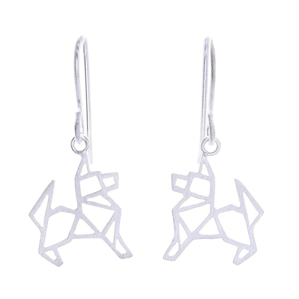 Geometric German Shepherd Sterling Silver Dangle Earrings 'Geometric German Shepherd'