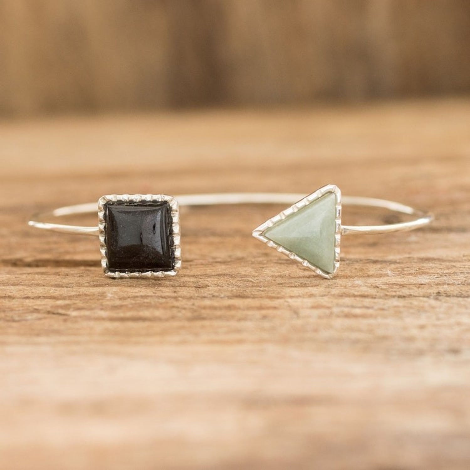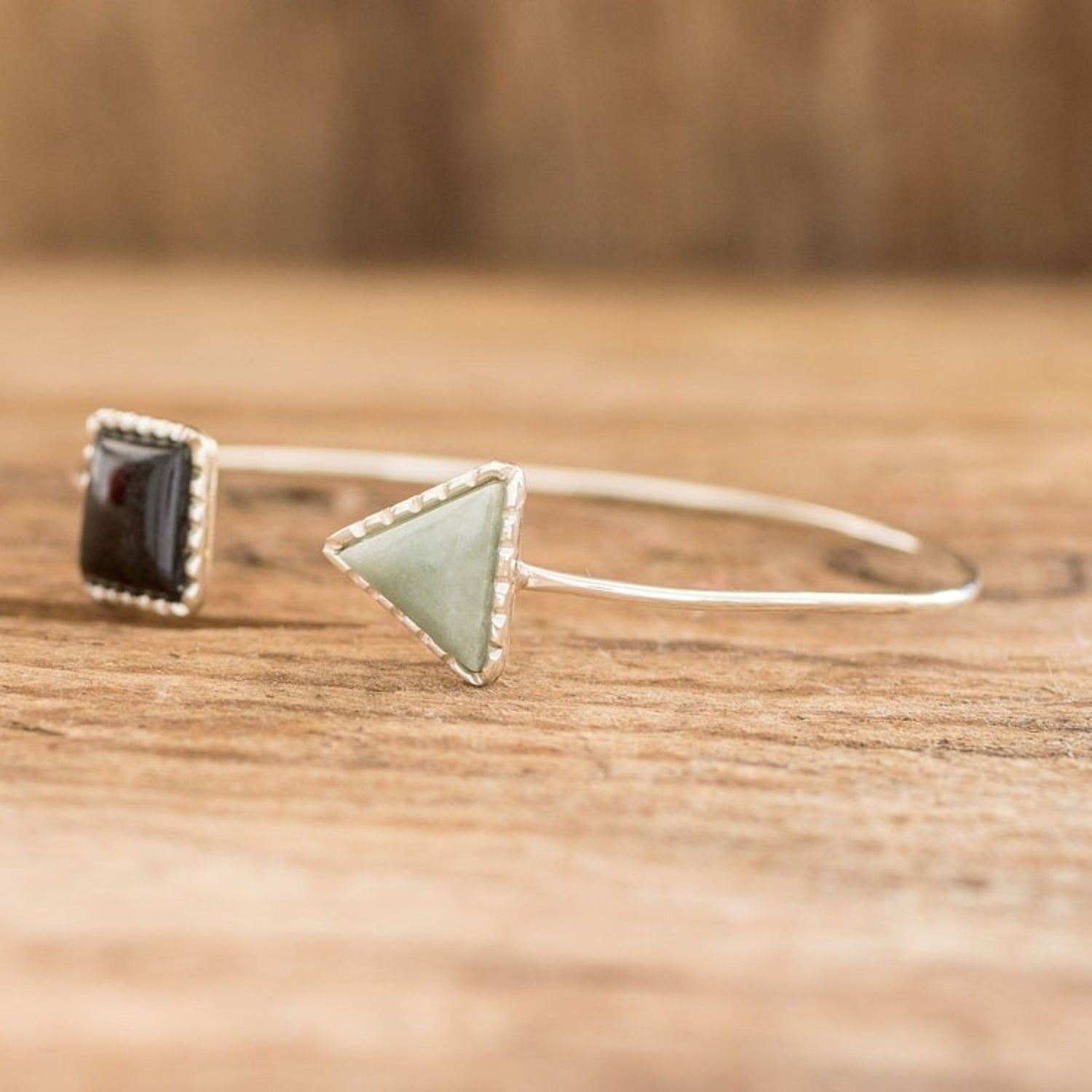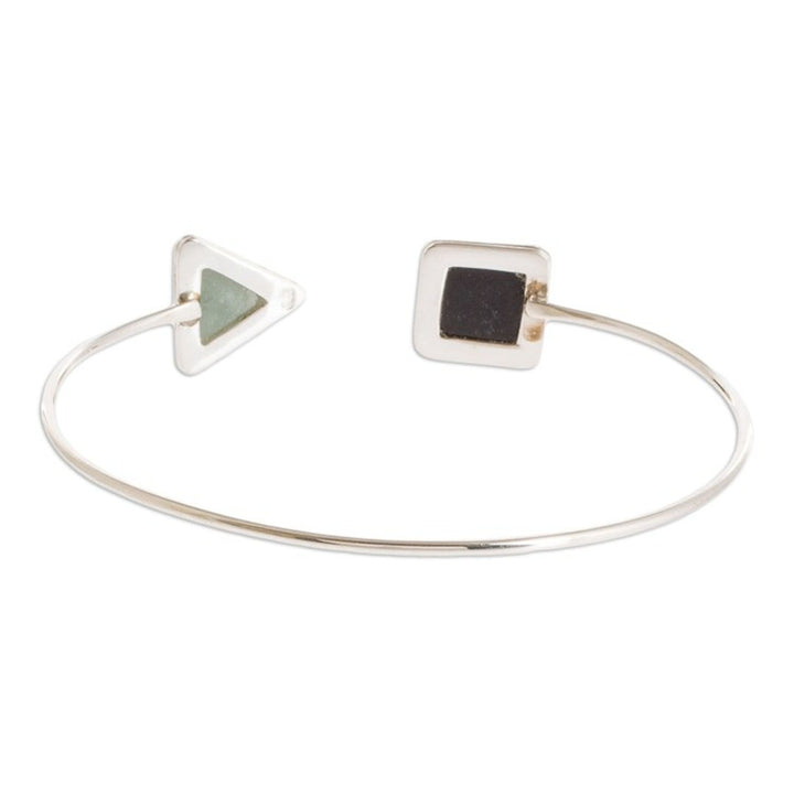 Geometric Themed Jade Cuff Bracelet with Sterling Silver 'Geometric Shapes II'