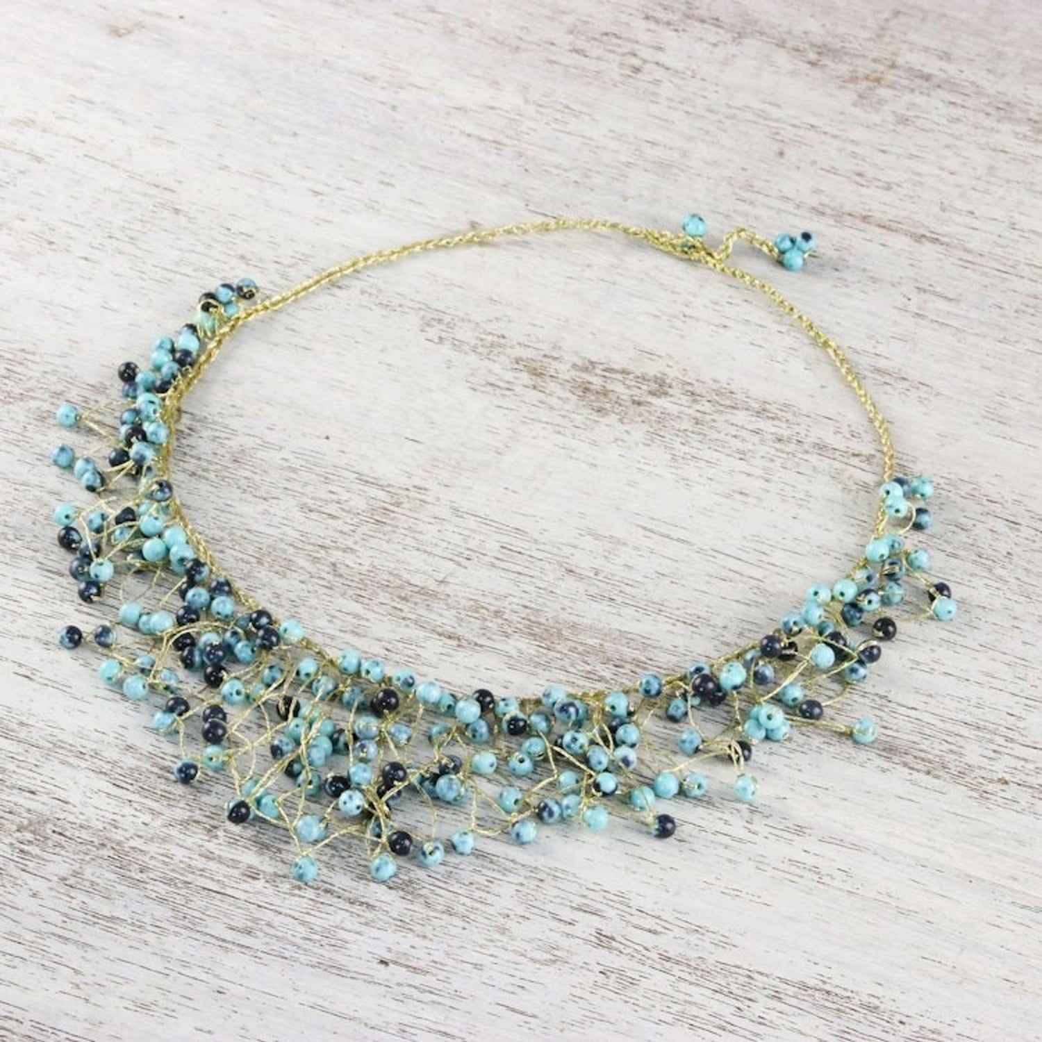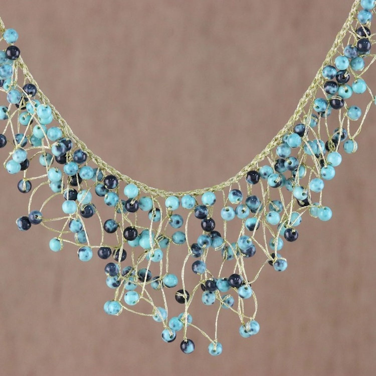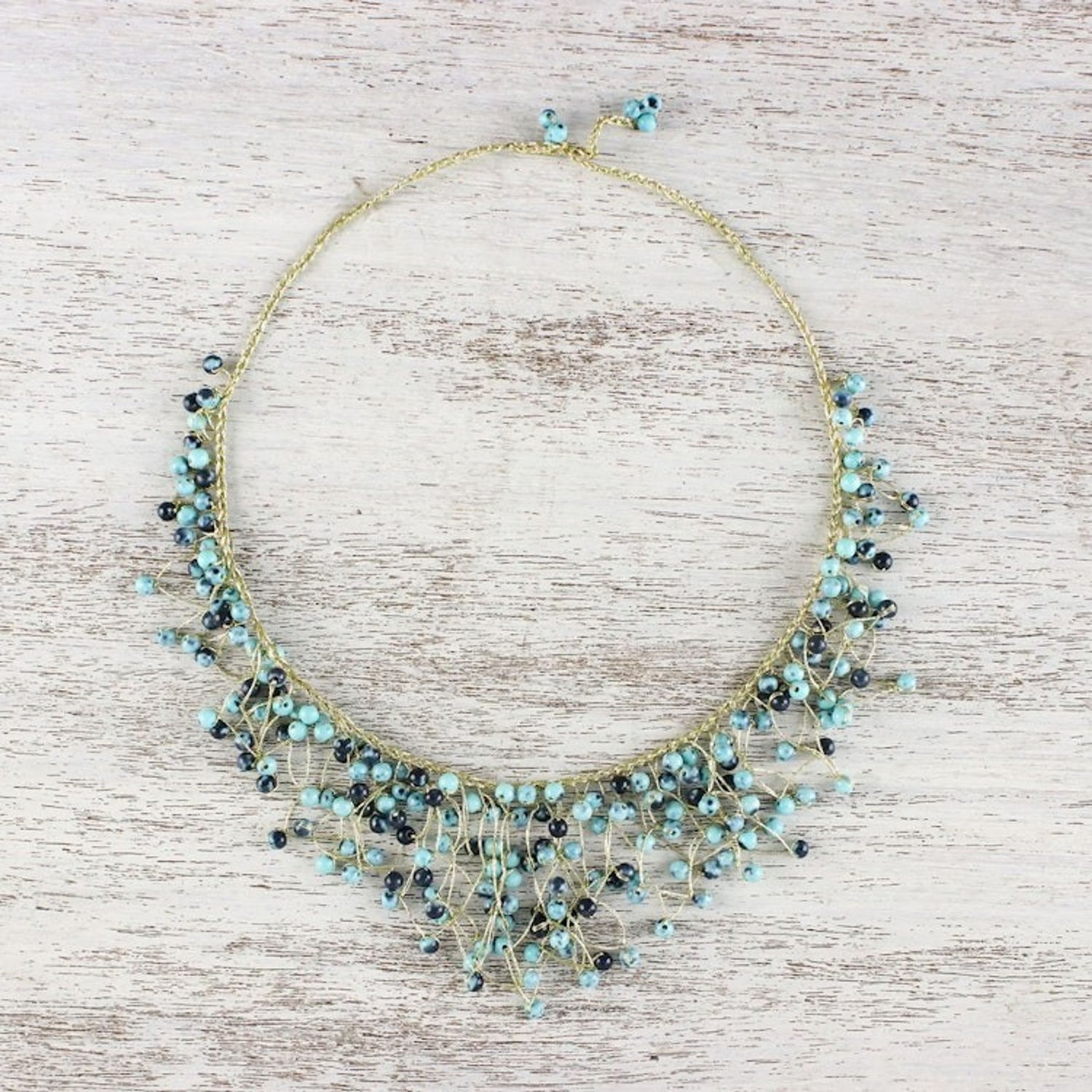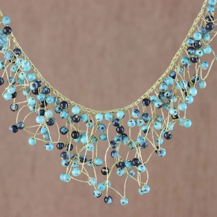 Glass Beaded Waterfall Necklace in Blue from Thailand 'Fantasy Rain in Blue'