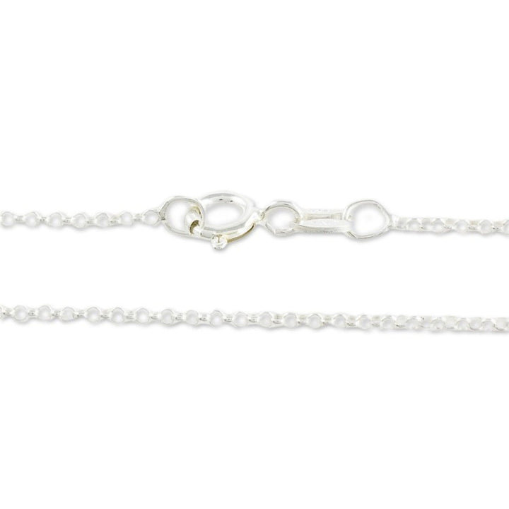 Handcrafted in Costa Rica, this necklace is made from .925 sterling silver and glass. It measures 18 inches in length with a 2 mm wide chain. The pendant measures 1.6 inches long by 0.3 inches wide. It has a high polish finish with a rolo chain and spring ring clasp. The color may vary slightly.
