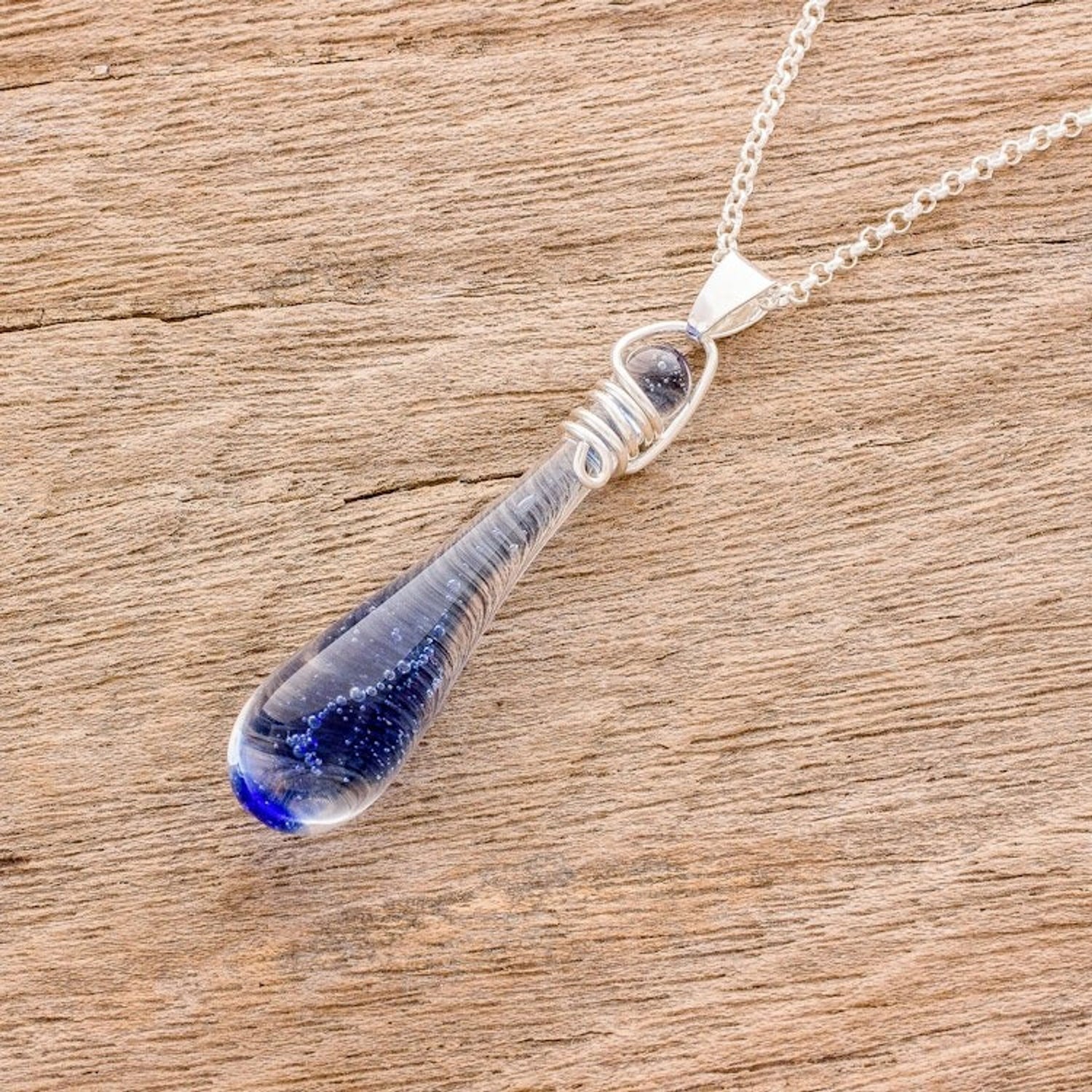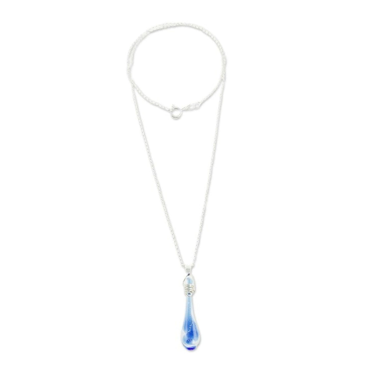 Glass Pendant Necklace in Blue from Costa Rica 'Bubbling Spring'