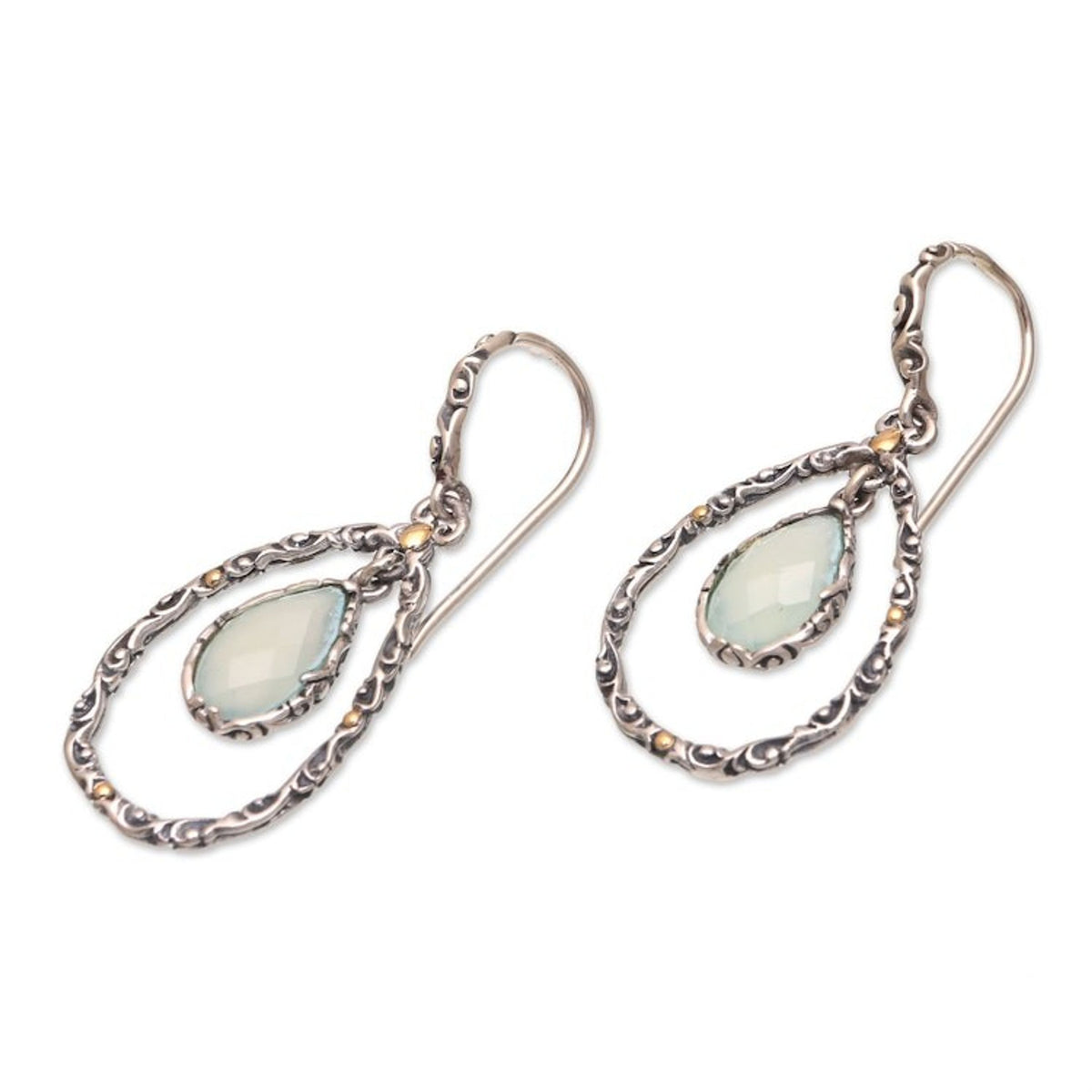 Gold Accented Blue Chalcedony Dangle Earrings from Bali 'Eternity Dew in Blue'