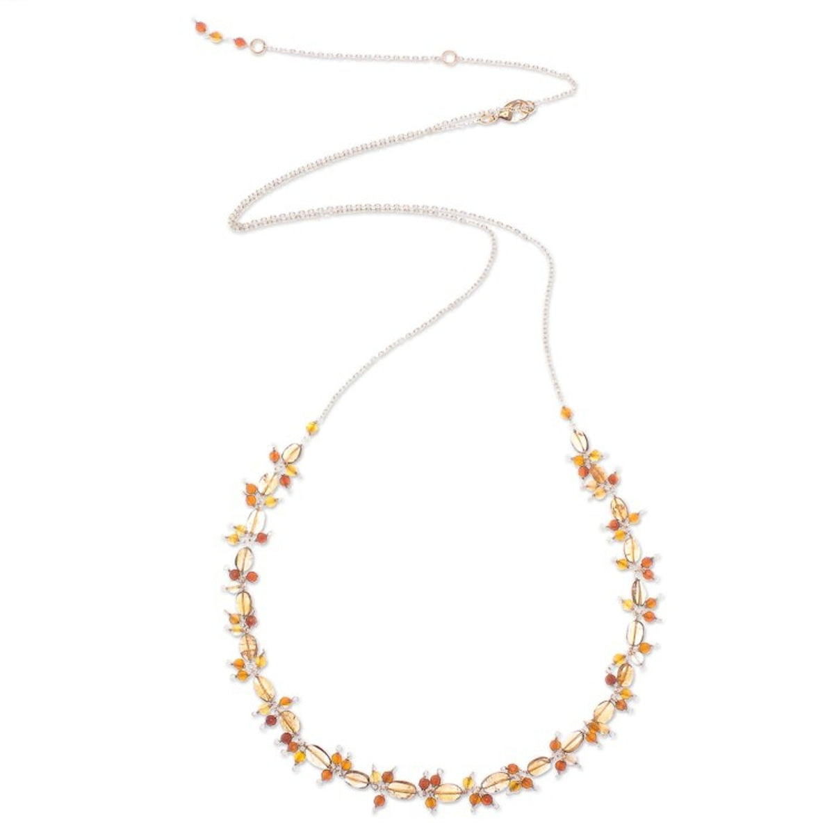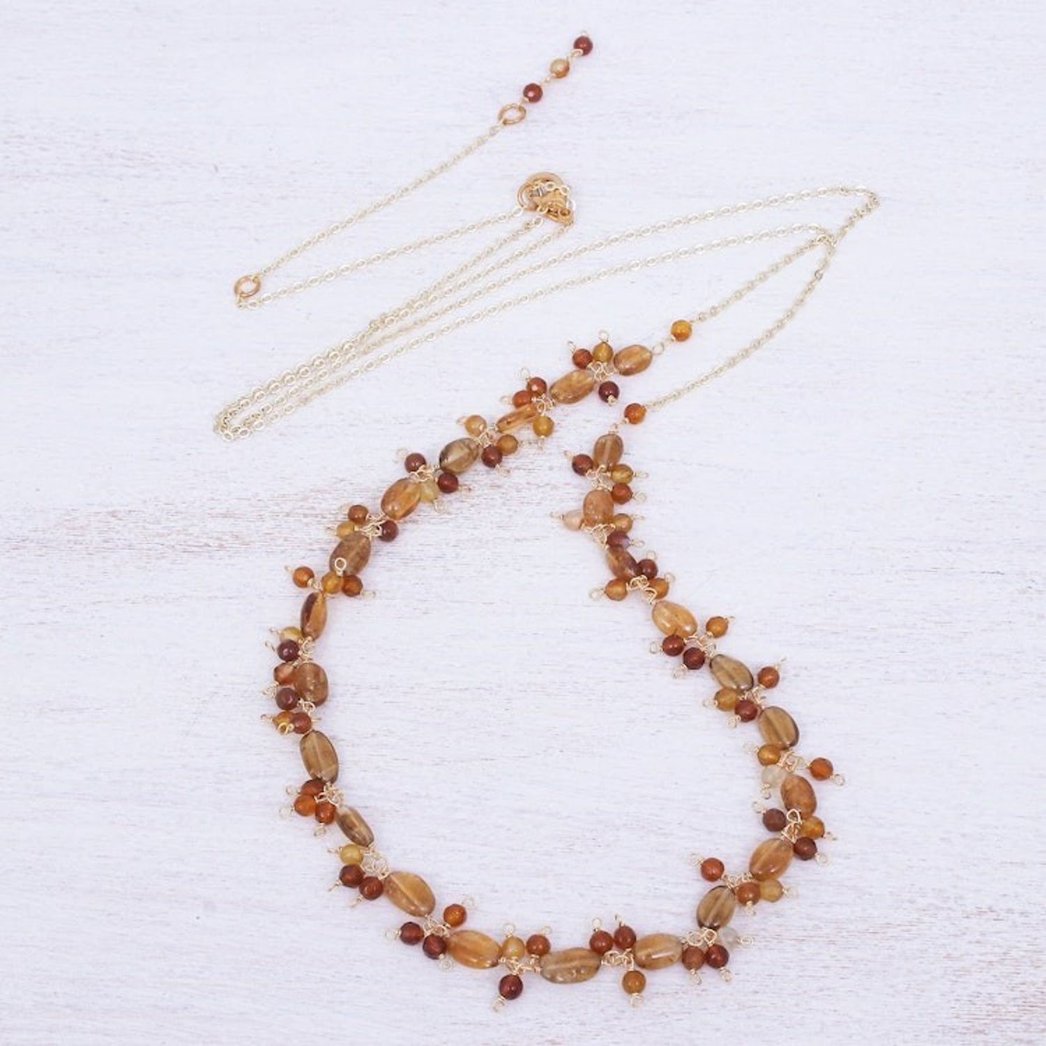 Gold Plated Necklace with Quartz and Citrine Beads 'Sunset Mood in Orange'