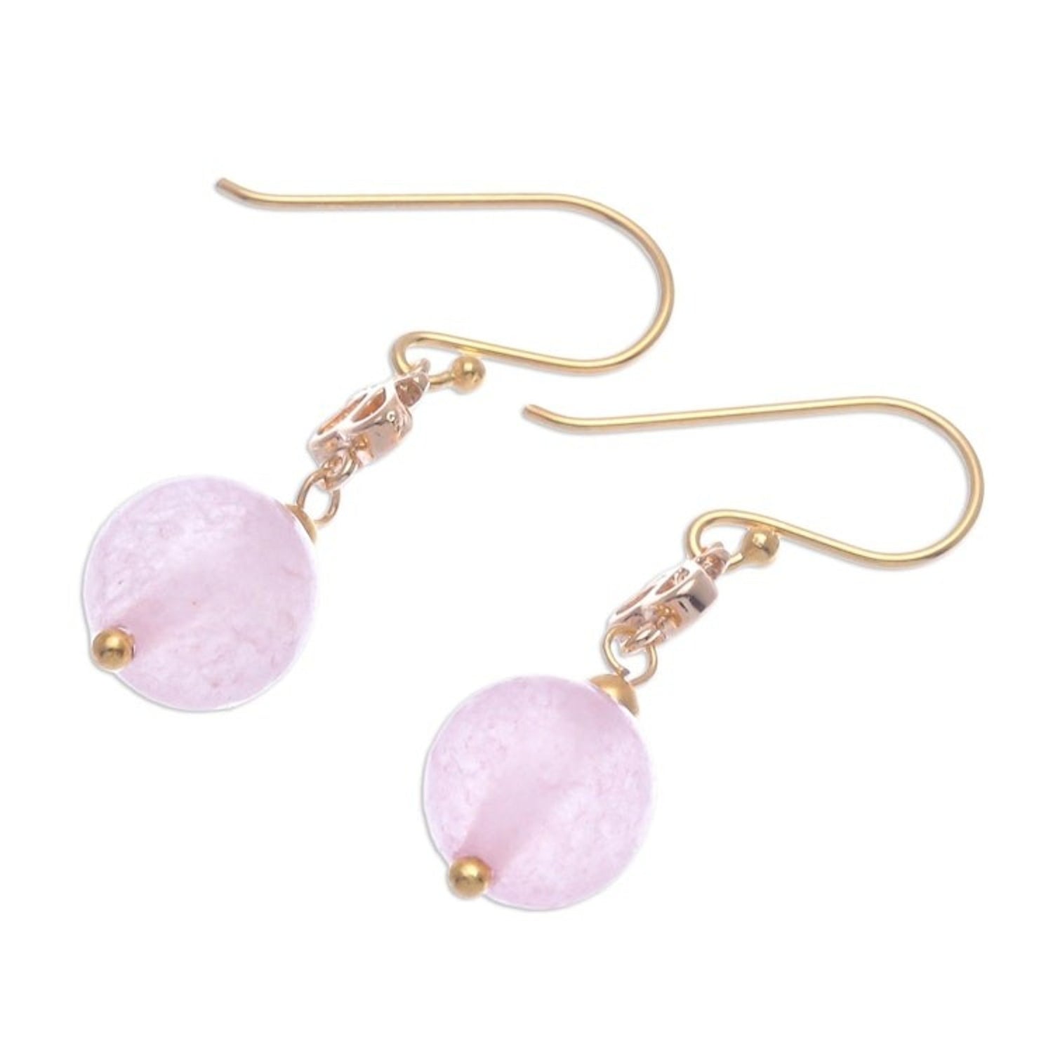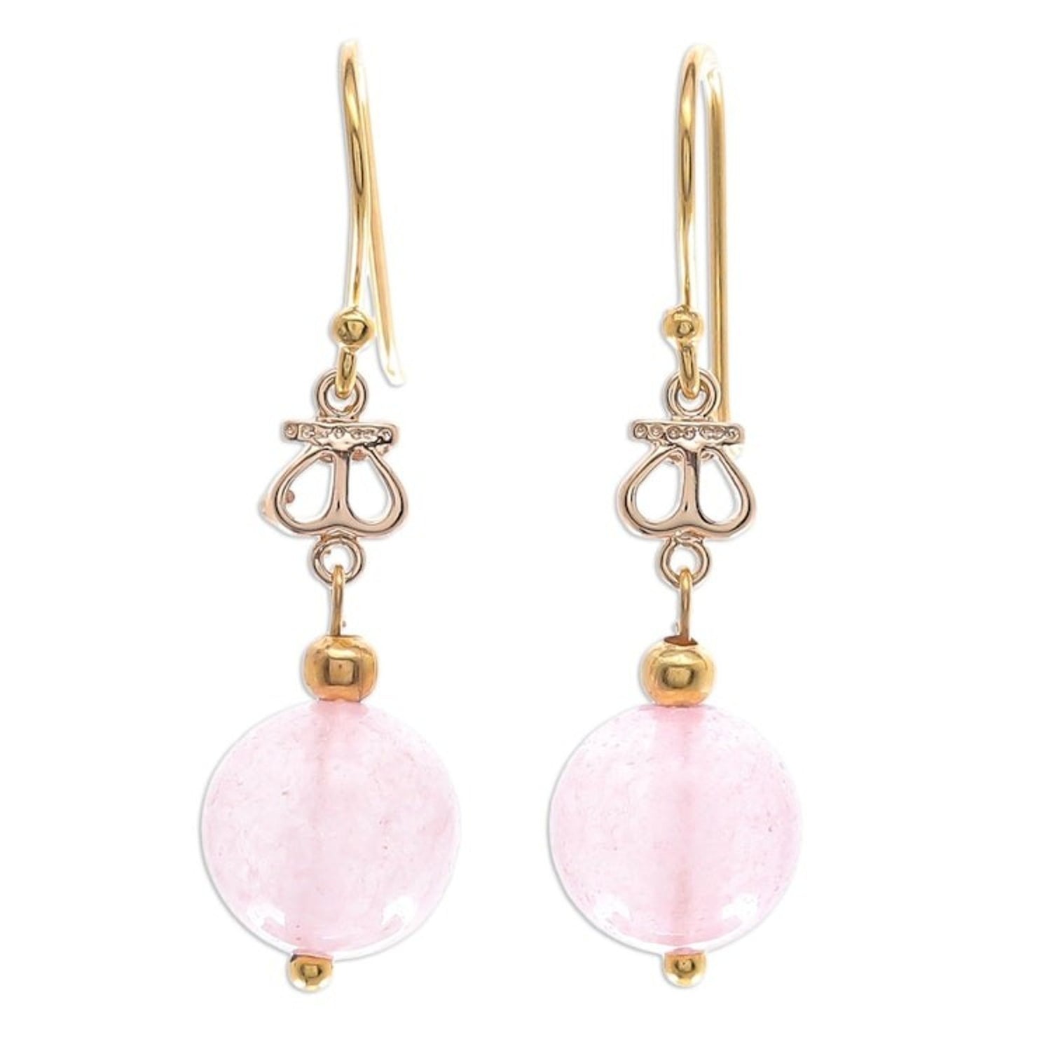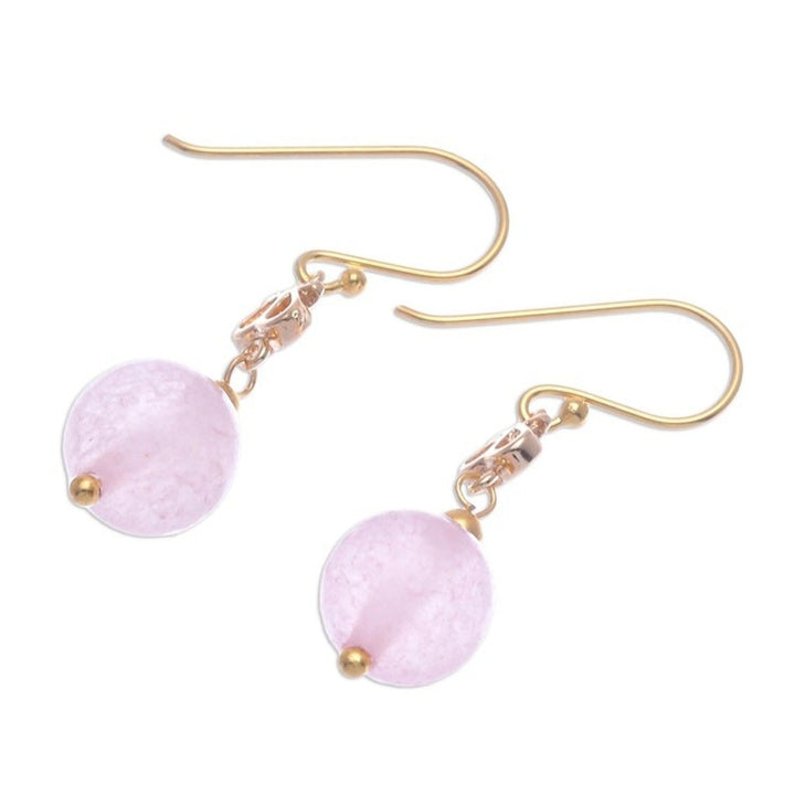 Gold-Plated Sterling Silver and Rose Quartz Dangle Earrings 'Sweet Throne'
