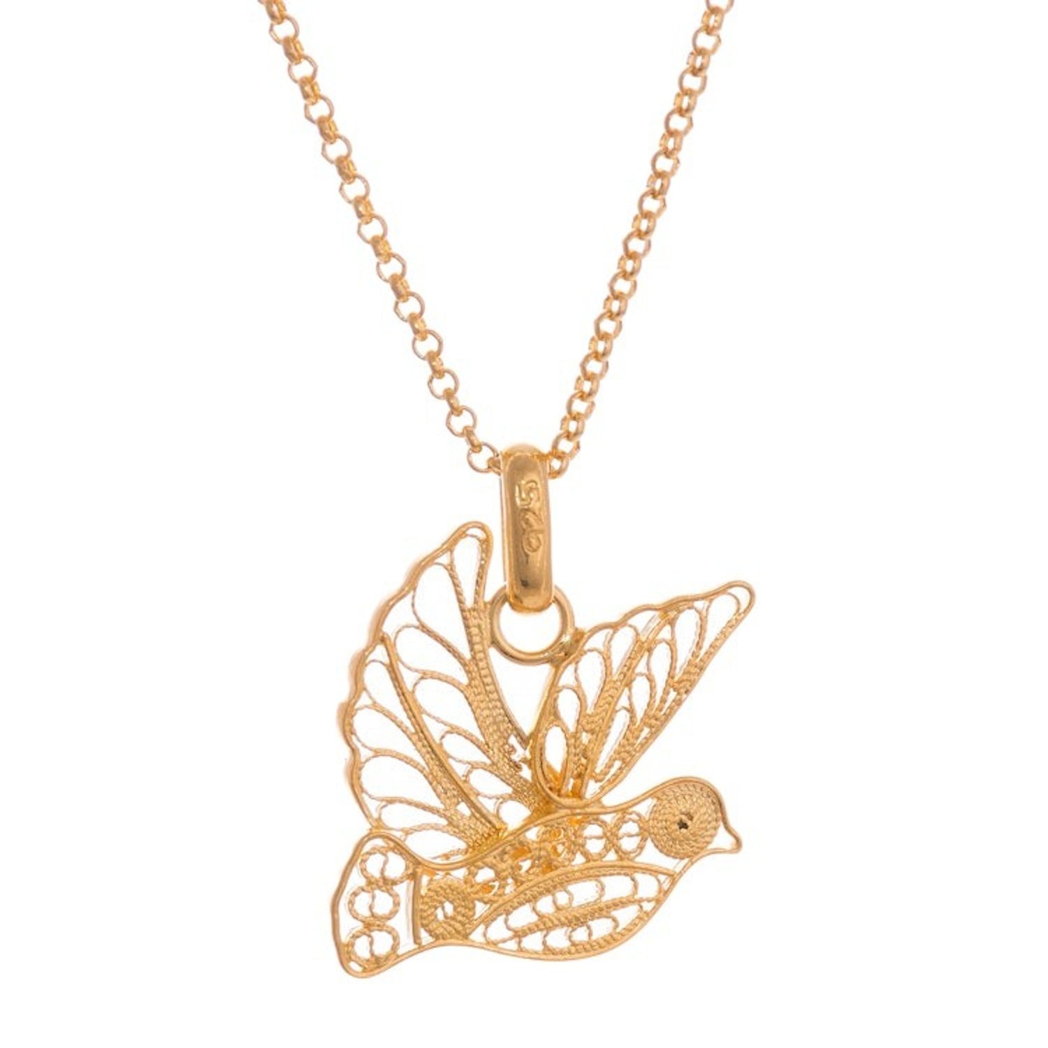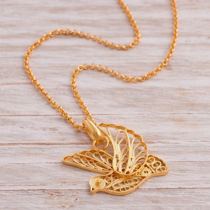 Gold Plated Sterling Silver Filigree Dove Necklace from Peru 'Peace and Grace'
