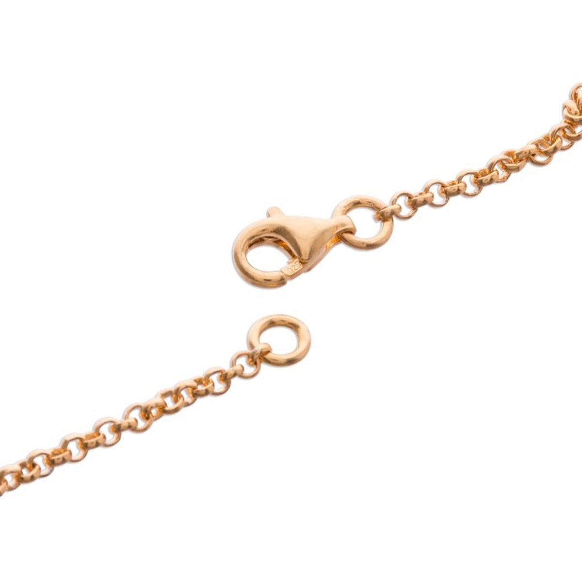Handcrafted in 24k gold-plated 925 sterling silver with a high-polish finish, this necklace weighs 0.26 oz. The rolo chain is 17.8 inches L and 2 mm W, with a lobster claw clasp. The pendant measures 1.2 inches L x 1 inch W x 0.1 inches D.