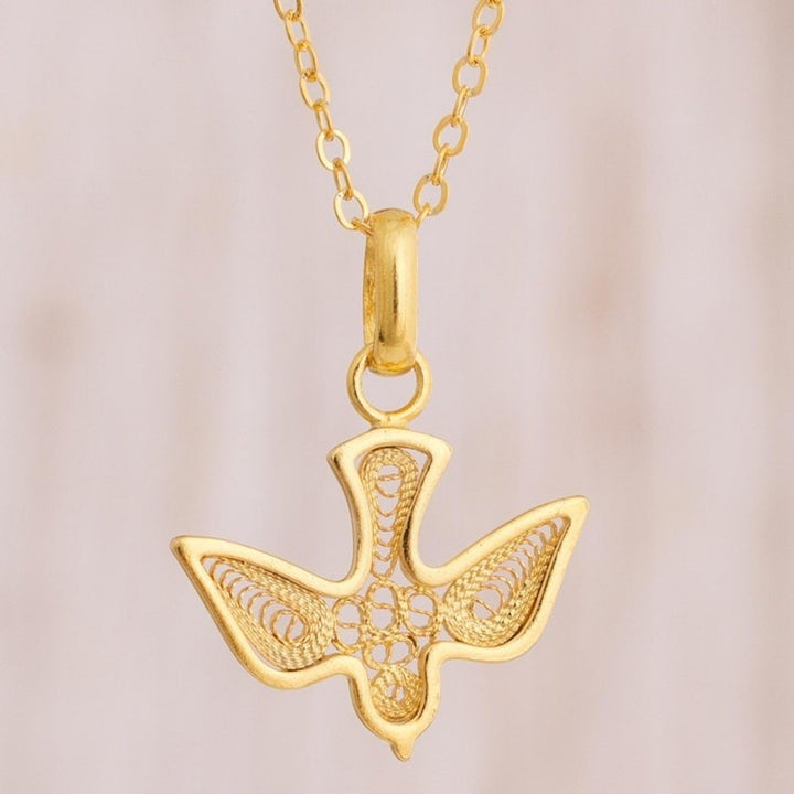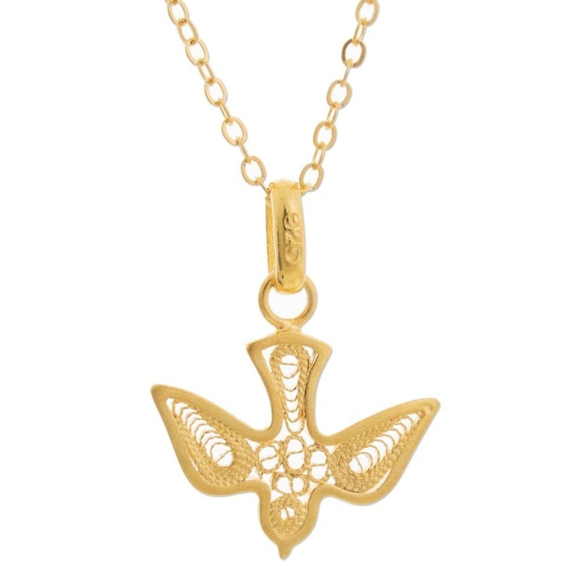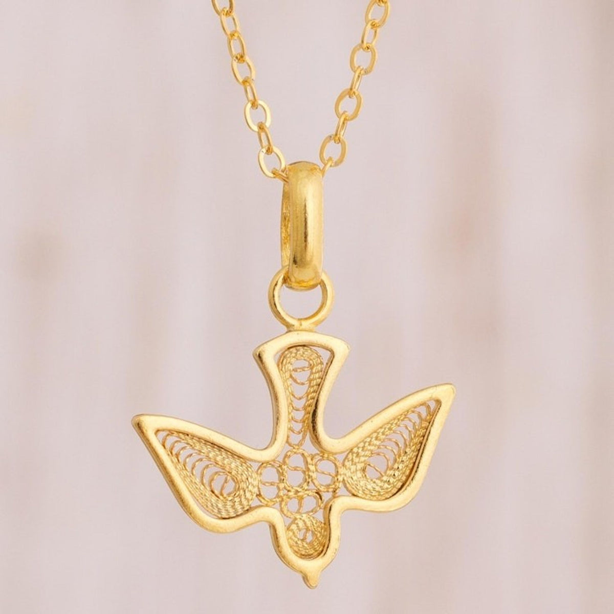 Gold Plated Sterling Silver Filigree Dove Pendant Necklace 'Gold Divine Dove'