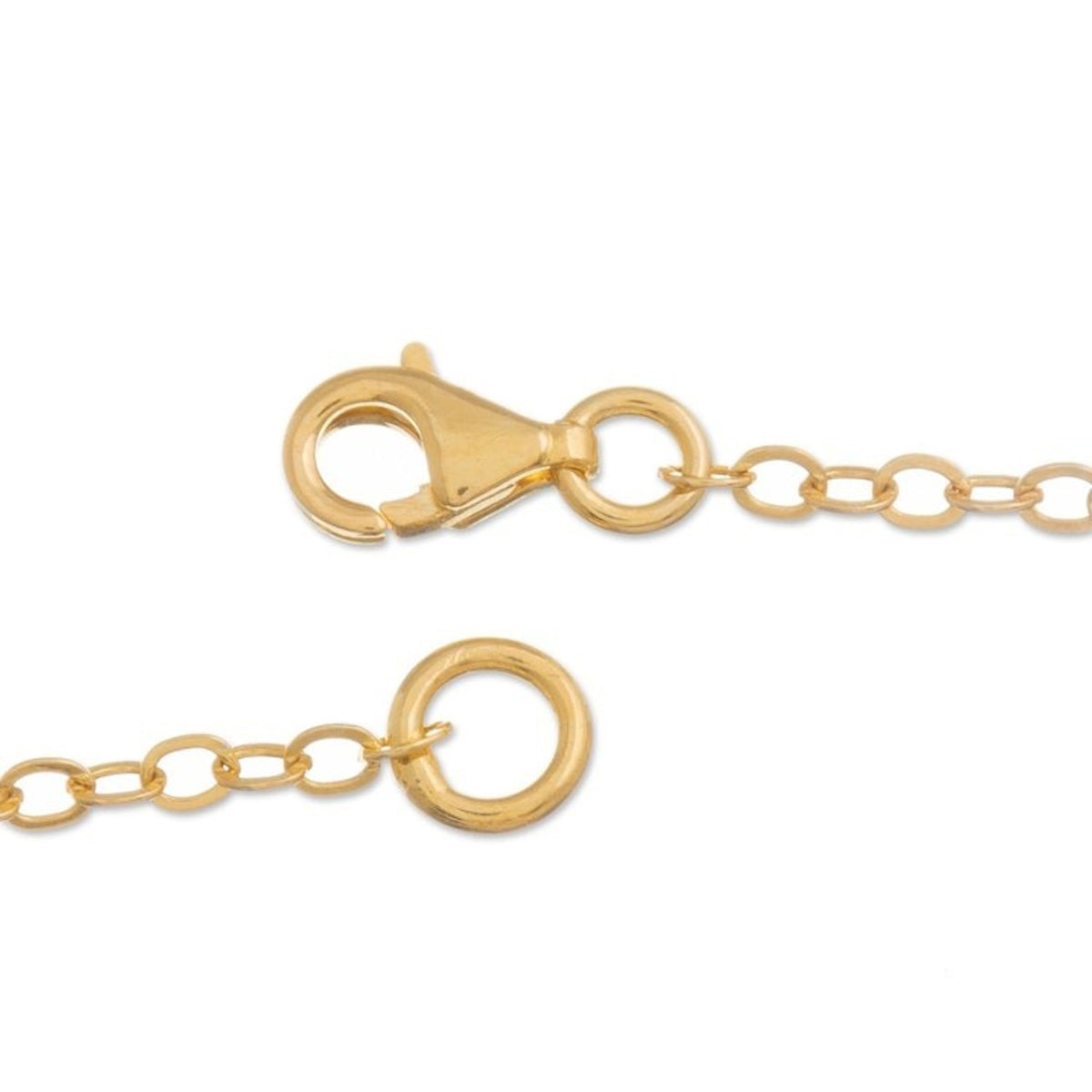 Handcrafted in 24k gold-plated 925 sterling silver with a high-polish finish, this necklace weighs 0.17 oz. The cable chain is 17.8 inches L and 2 mm W, with a lobster claw clasp. The pendant measures 1.3 inches L x 1 inch W x 0.1 inches D.
