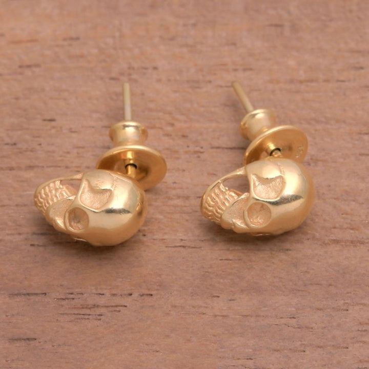 Gold Plated Sterling Silver Skull Earrings from Bali 'Skull Kingdom'